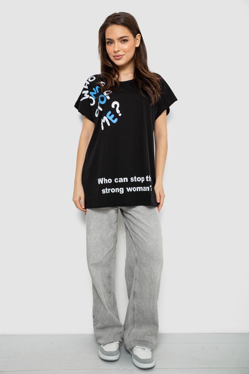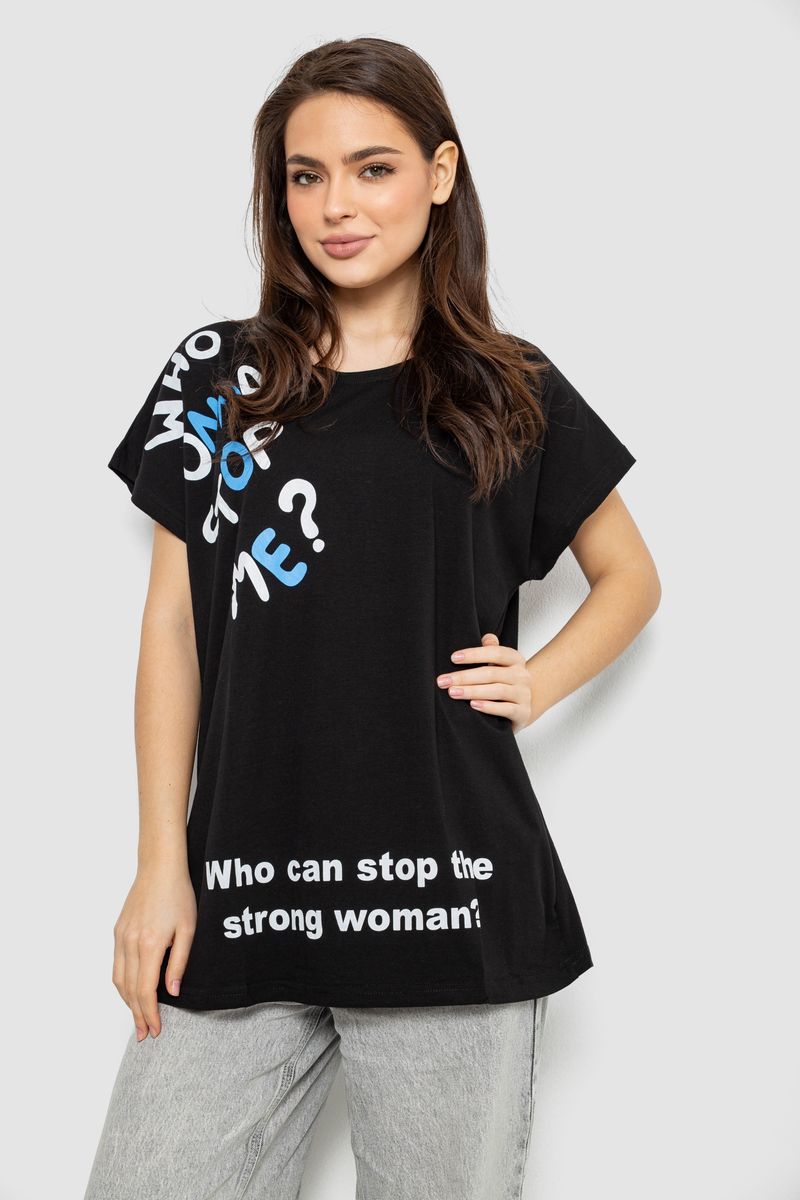 Футболка жіноча з принтом, колір чорний, 244R3001