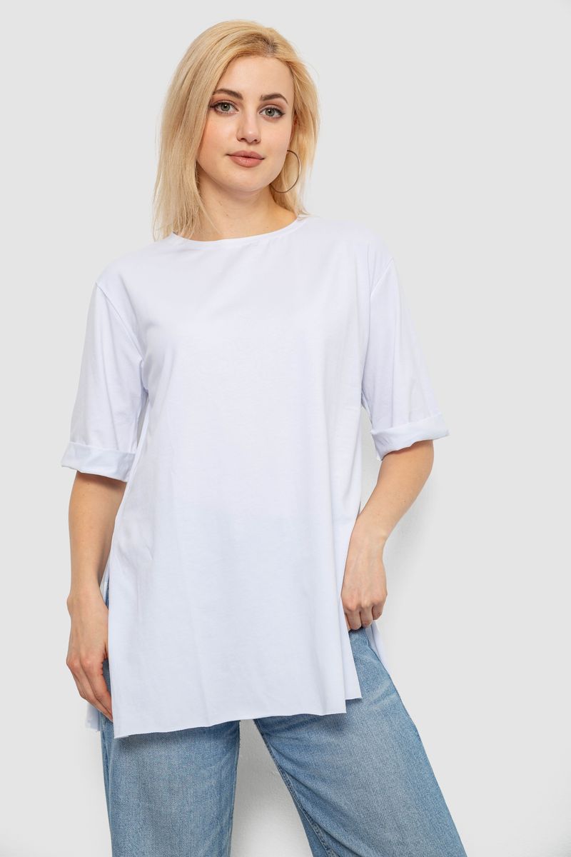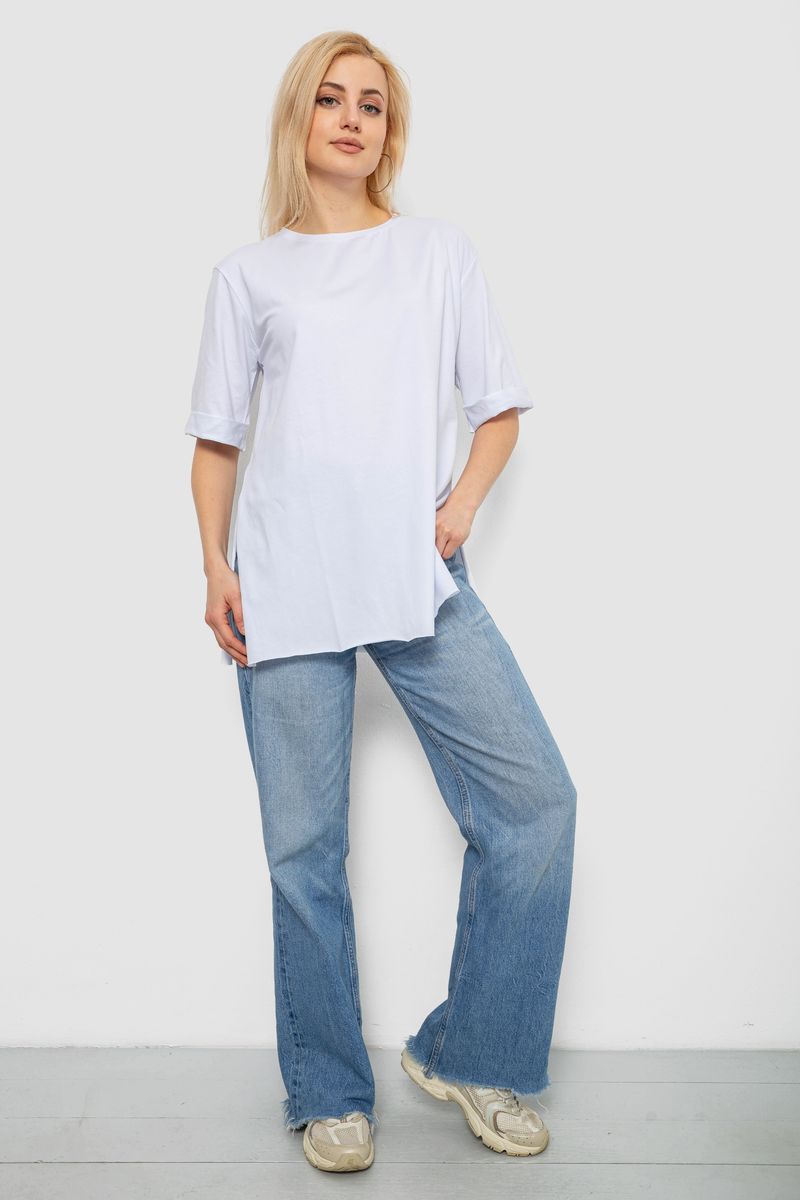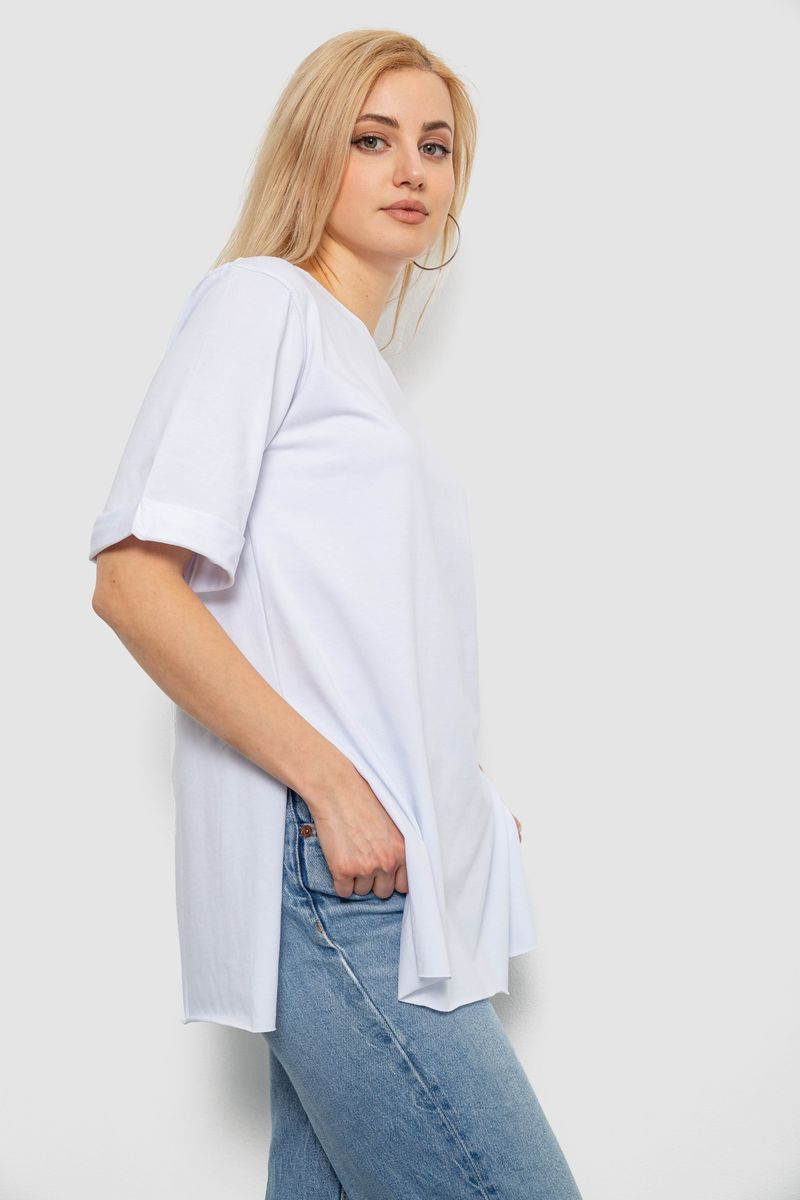 Футболка жіноча однотонна, колір білий, 244R1036-5 : Колір - Білий, Розмір - M (арт. 244R1036-5)