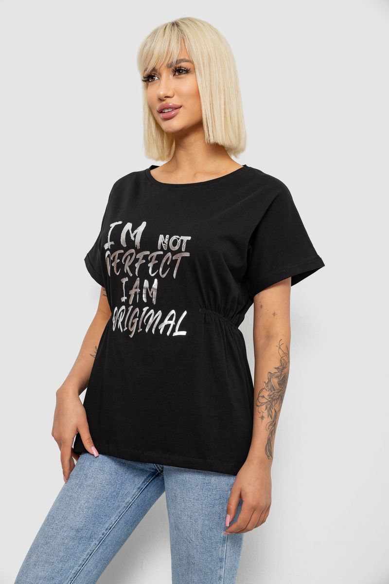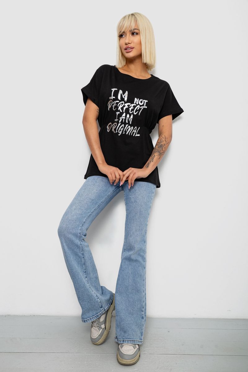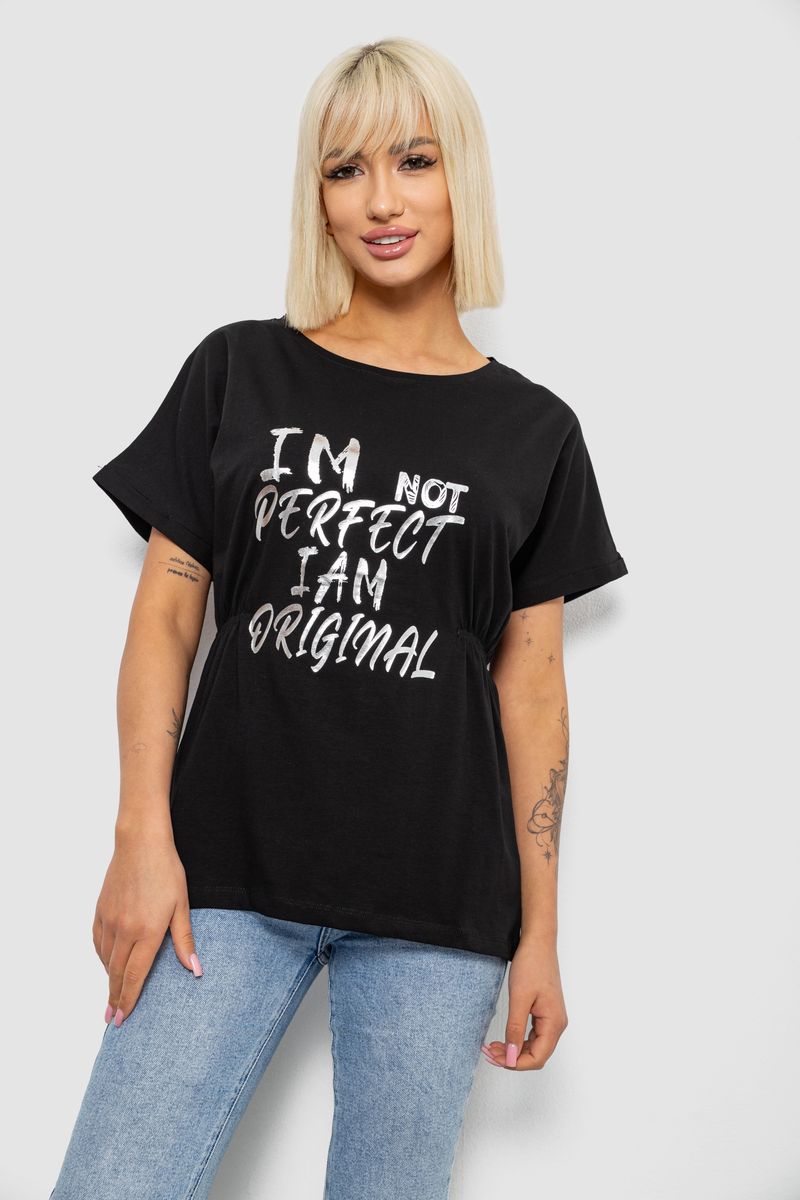 Футболка жіноча з принтом, колір чорний, 244R2349-5 : Колір - Чорний, Розмір - L (арт. 244R2349-5)