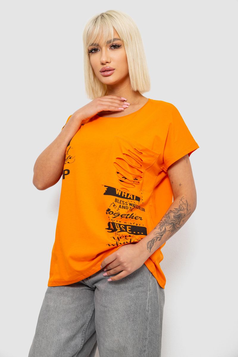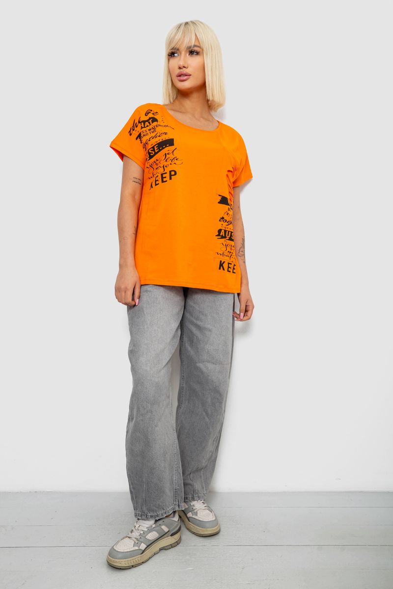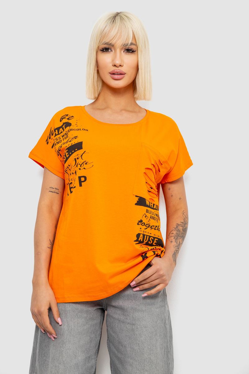 Футболка жіноча з принтом, колір помаранчевий, 244R2013-5 : Колір - Помаранчевий, Розмір - M-L (арт. 244R2013-5)