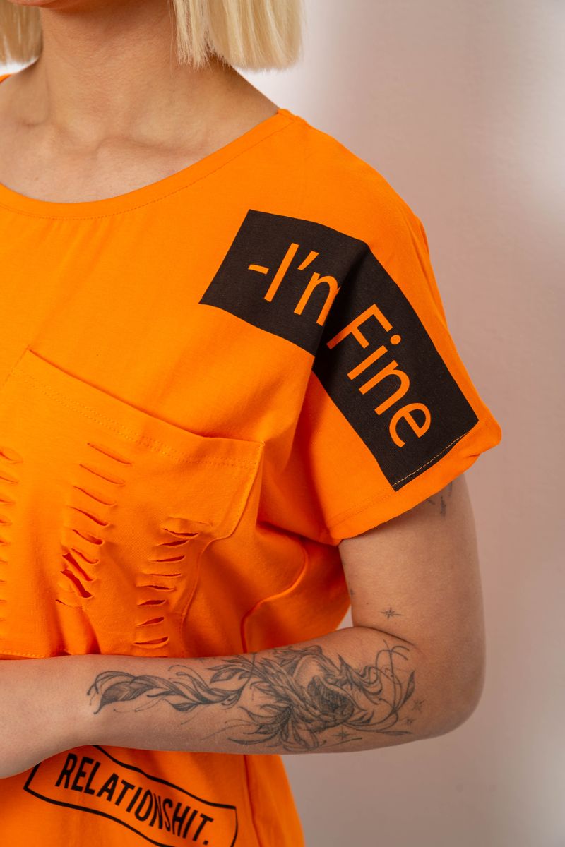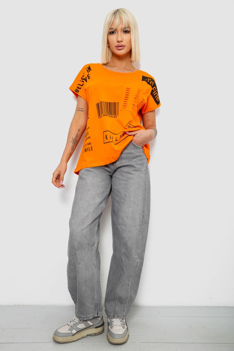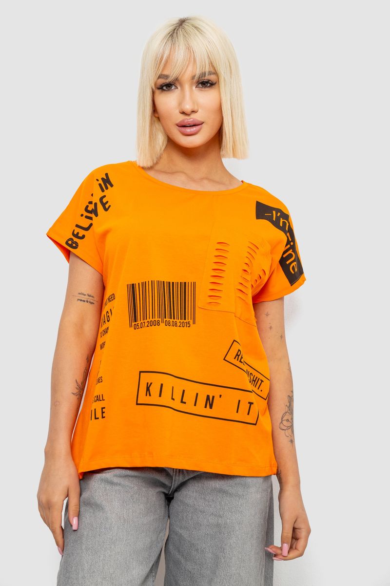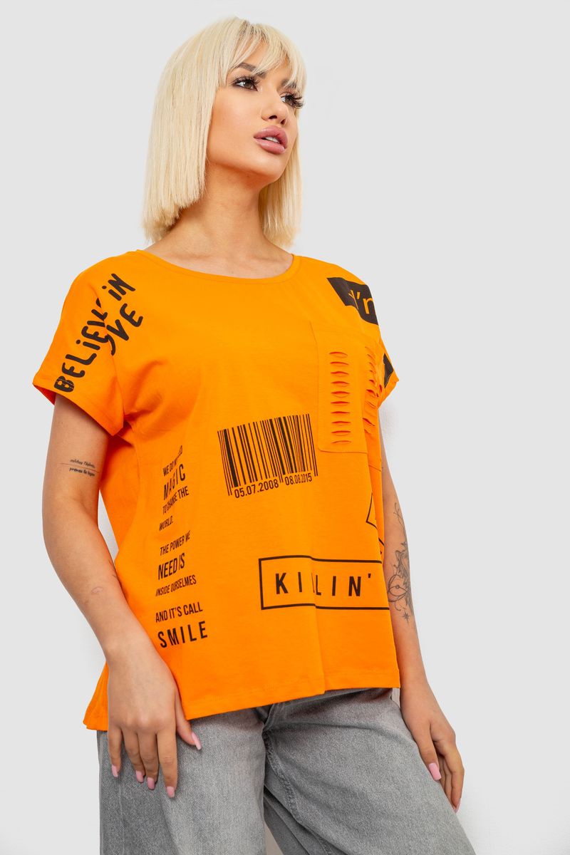 Футболка жіноча з принтом, колір помаранчевий, 244R2013-8 : Колір - Помаранчевий, Розмір - M-L (арт. 244R2013-8)