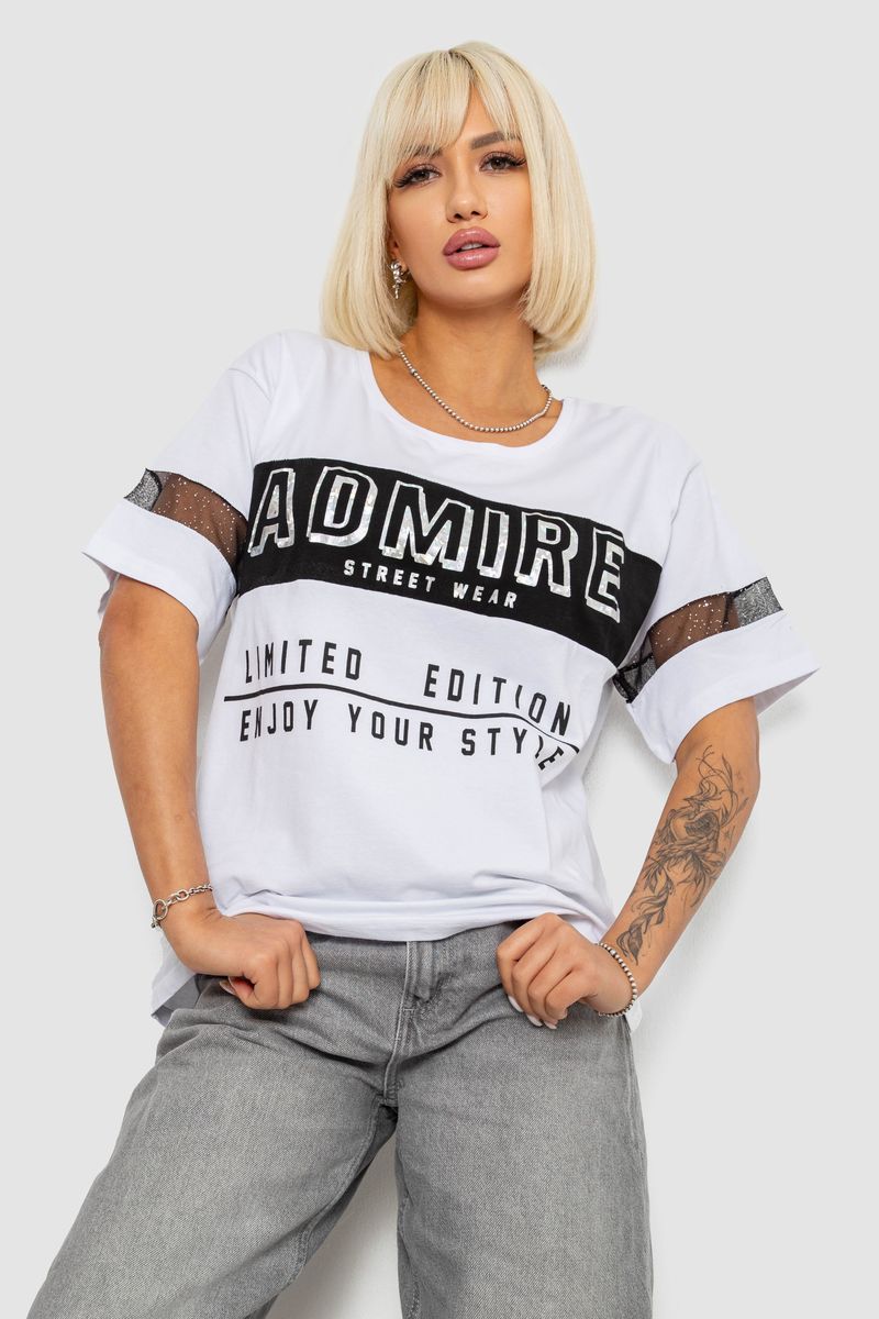 Футболка жіноча з принтом, колір білий, 244R2153-5