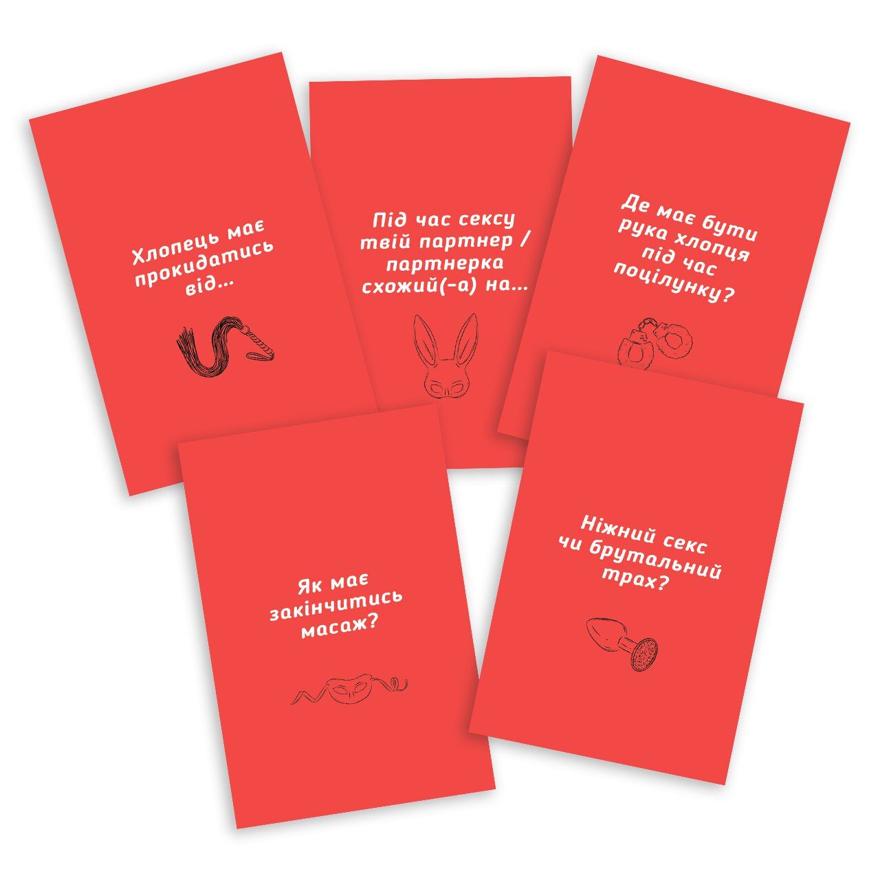 Колода карток із запитаннями, що охоплюють різні сфери життя: від кумедних побутових дрібниць до пікантних та глибоких тем.