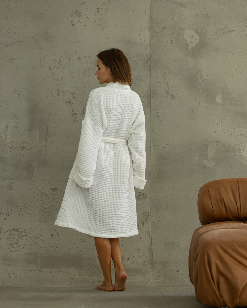 Натуральний якісний бавовняний халат із тканини вафля.