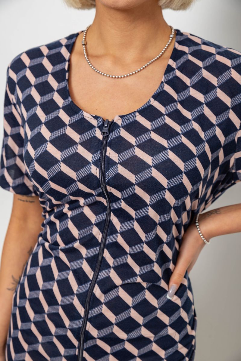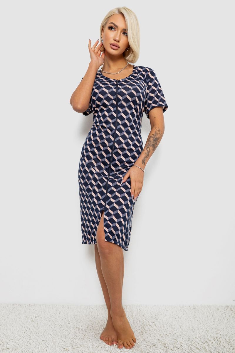 Халат жіночий на блискавці з принтом, колір синій, 257R1030-9