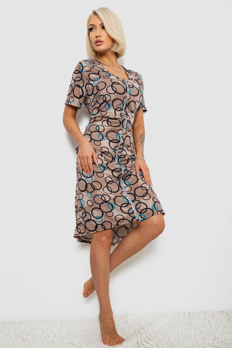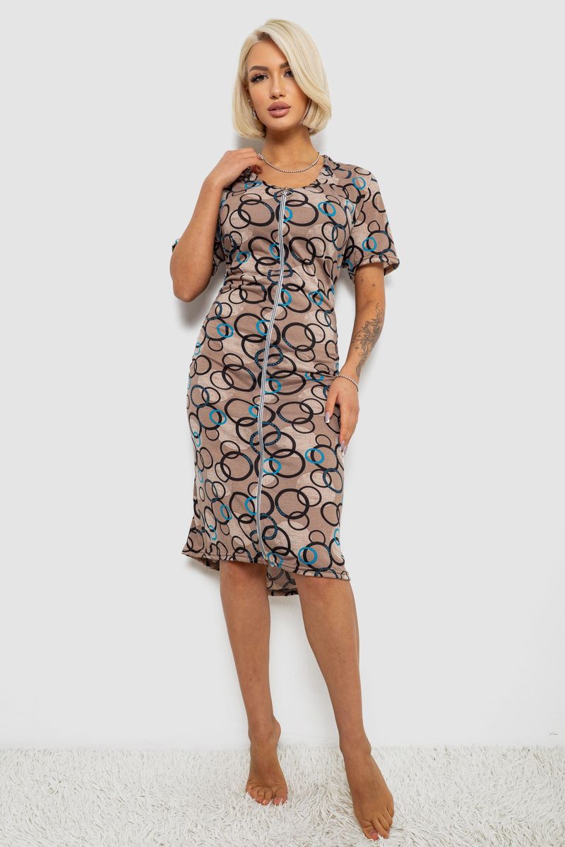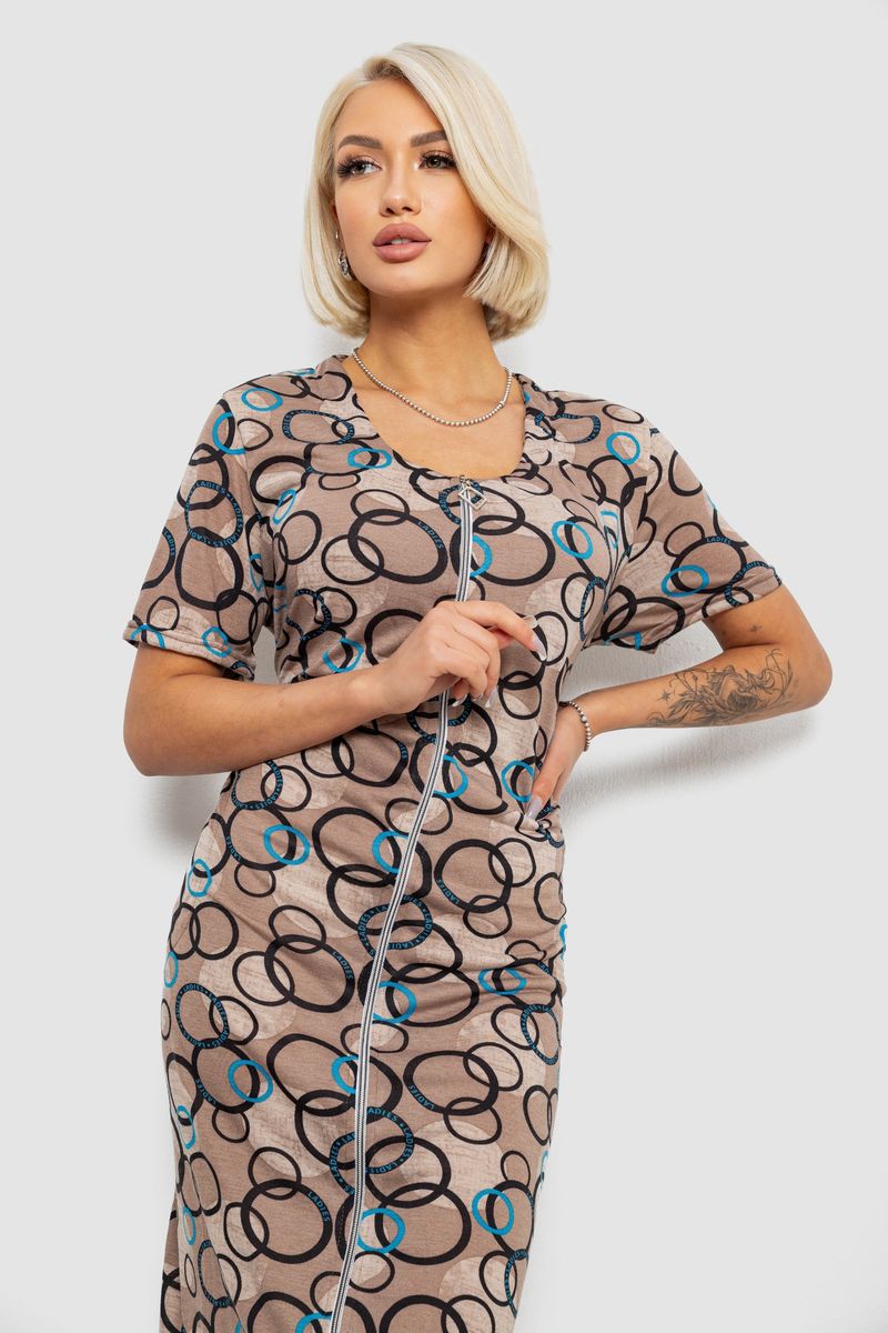 Халат жіночий на блискавці з принтом, колір мокко, 257R1030