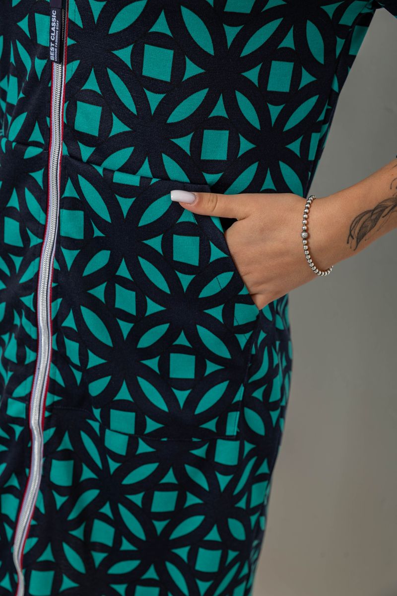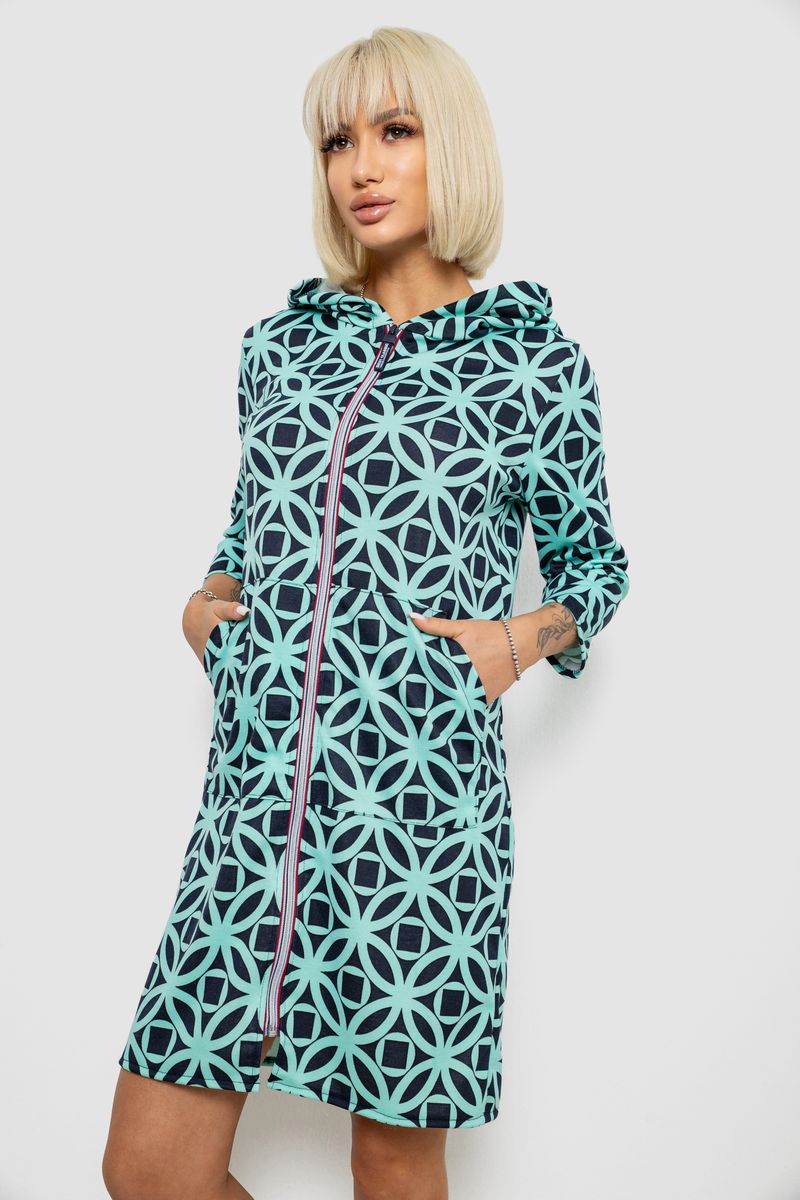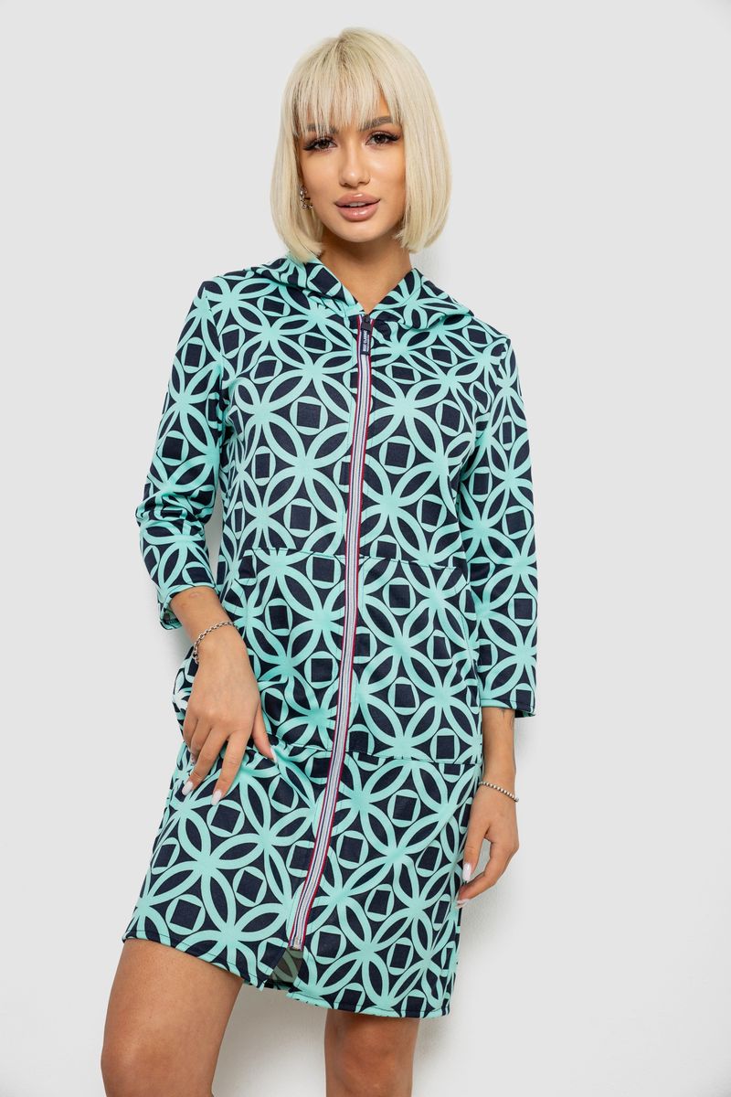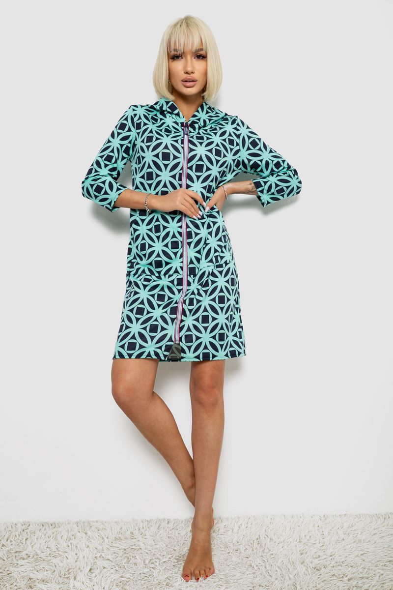 Халат жіночий на блискавці з принтом, колір м'ятний, 257R1027