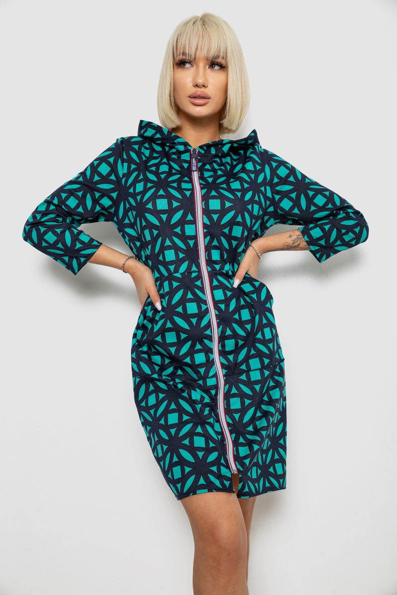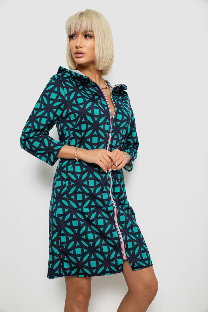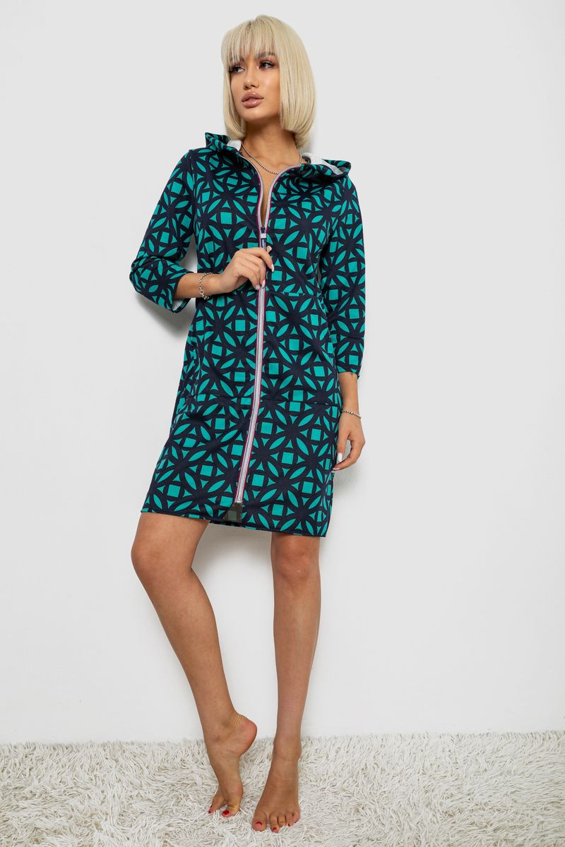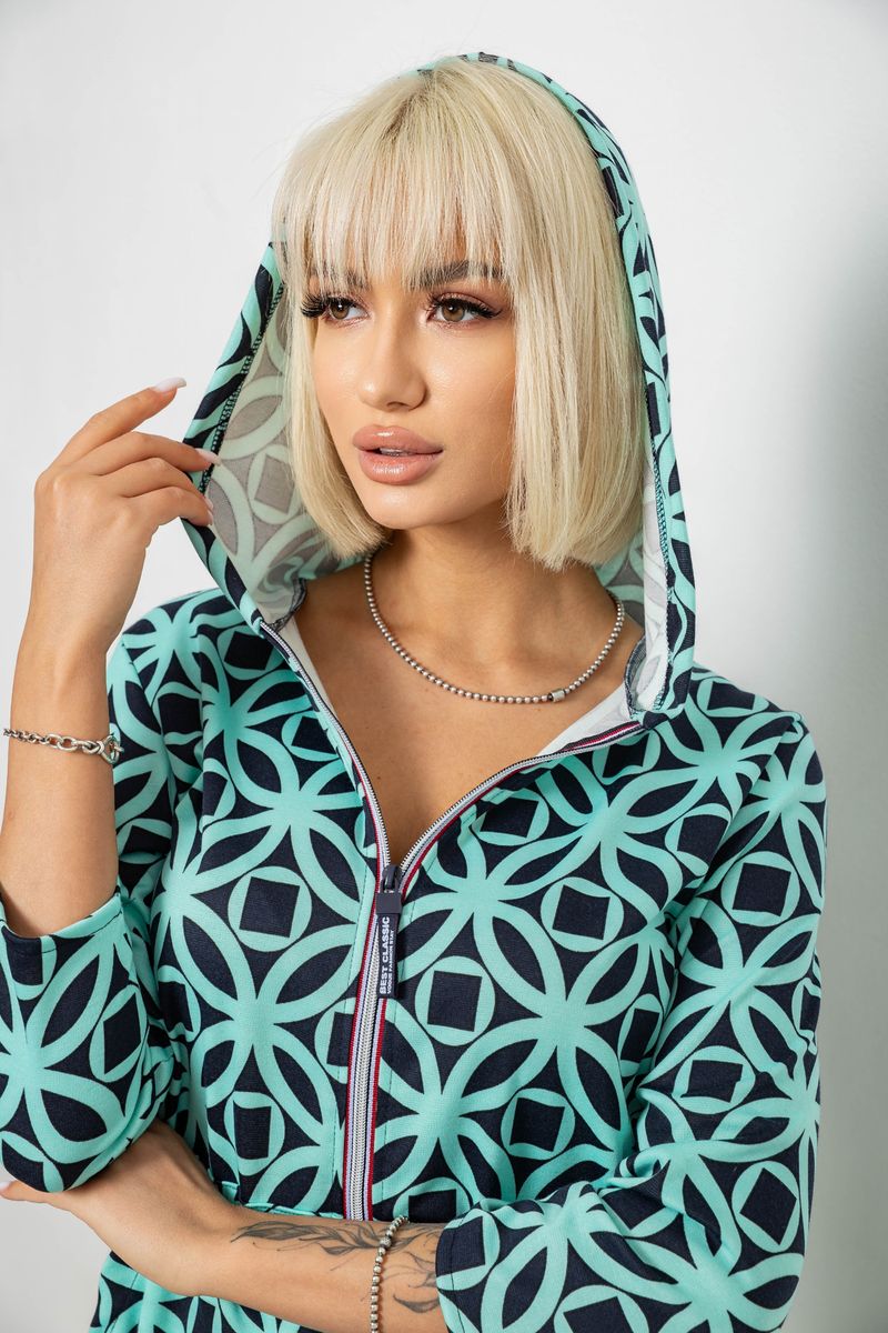 Халат жіночий на блискавці з принтом, колір м'ятний, 257R1027
