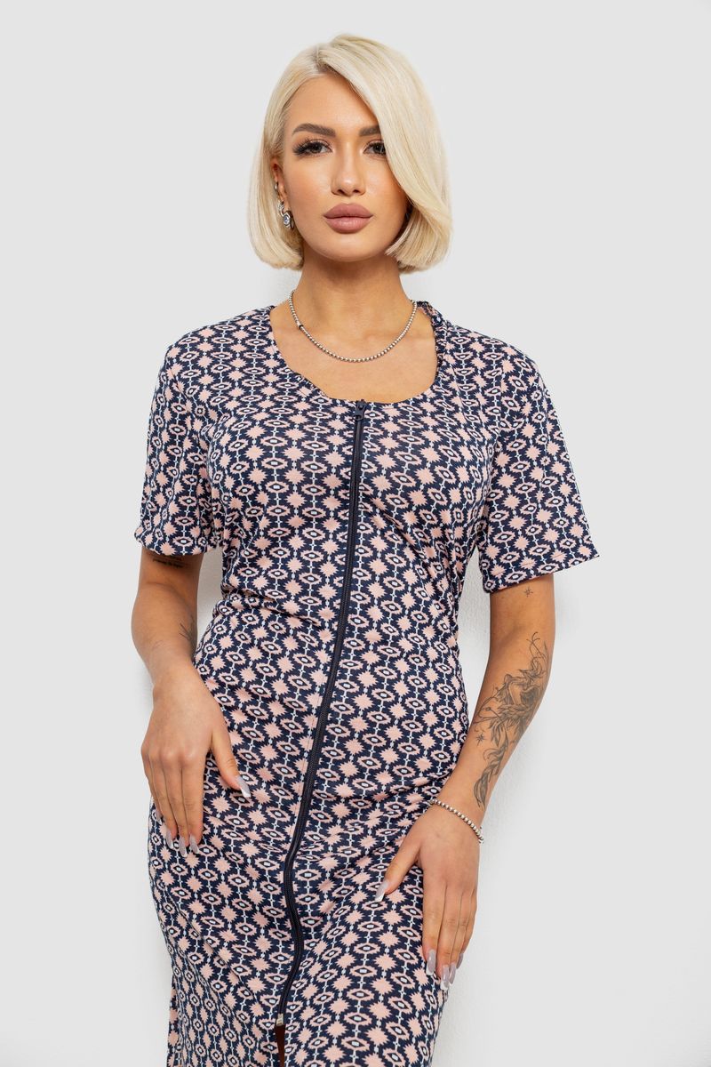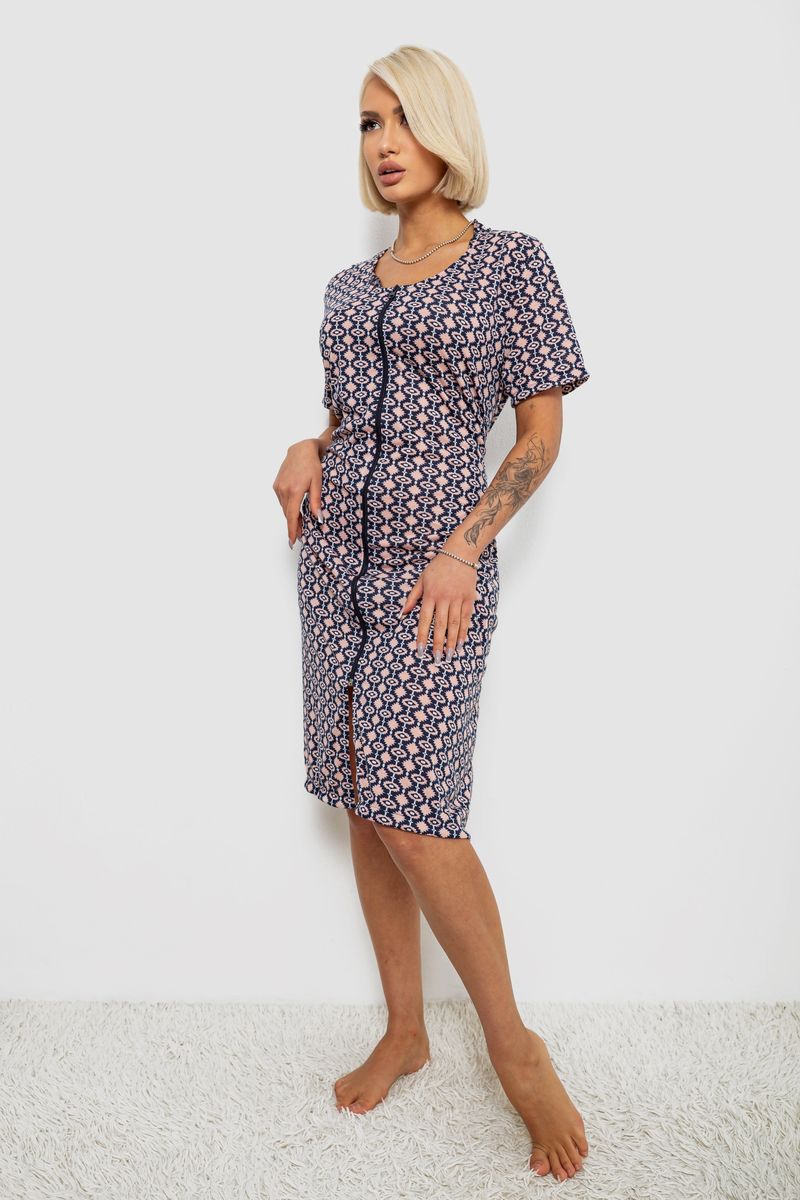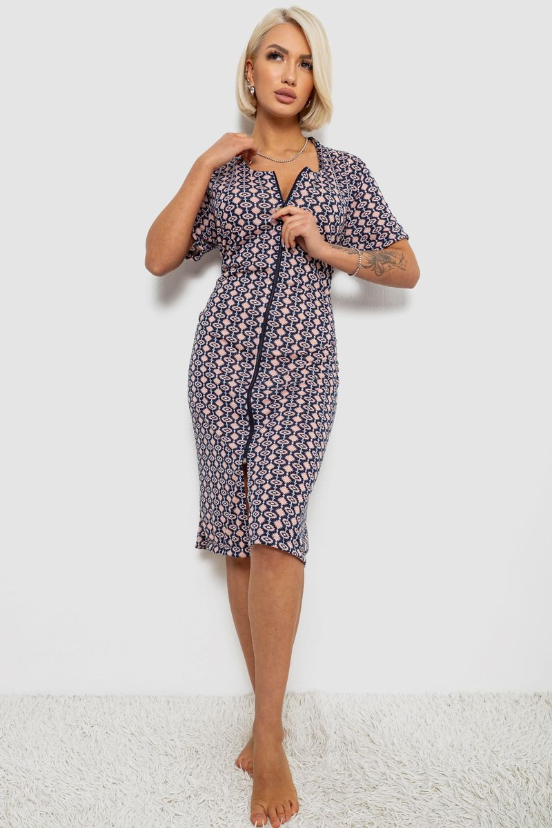 Халат жіночий на блискавці з принтом, колір синьо-пудровий, 257R1030-8