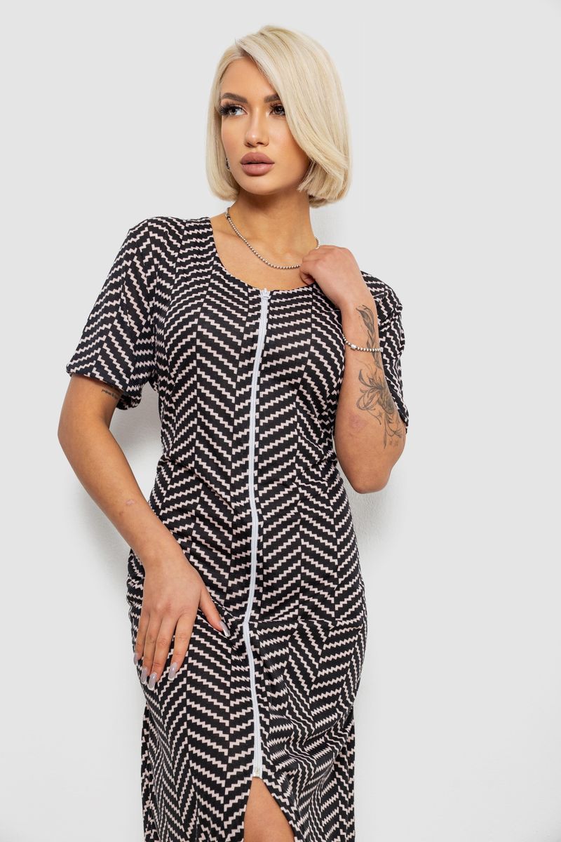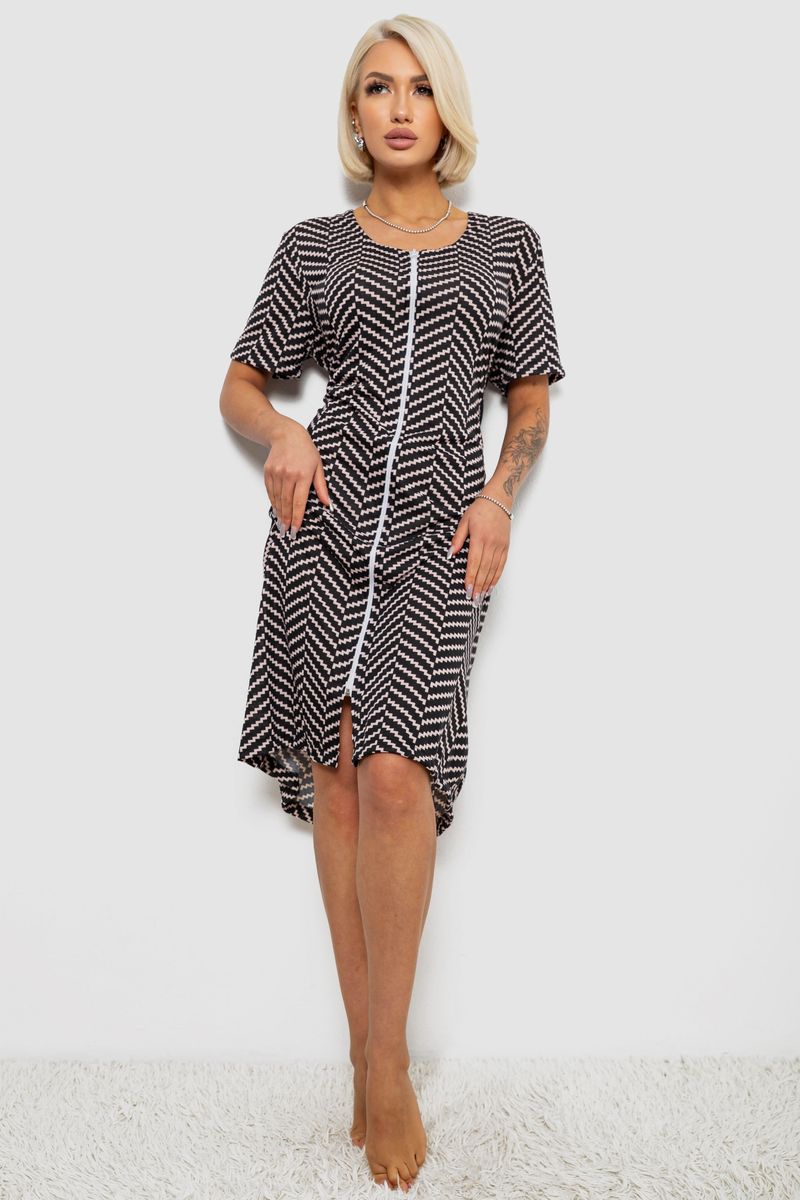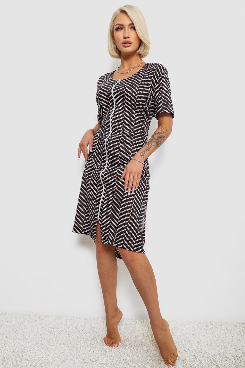 Халат жіночий на блискавці з принтом, колір чорний, 257R1030-6