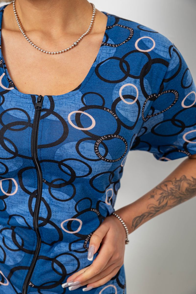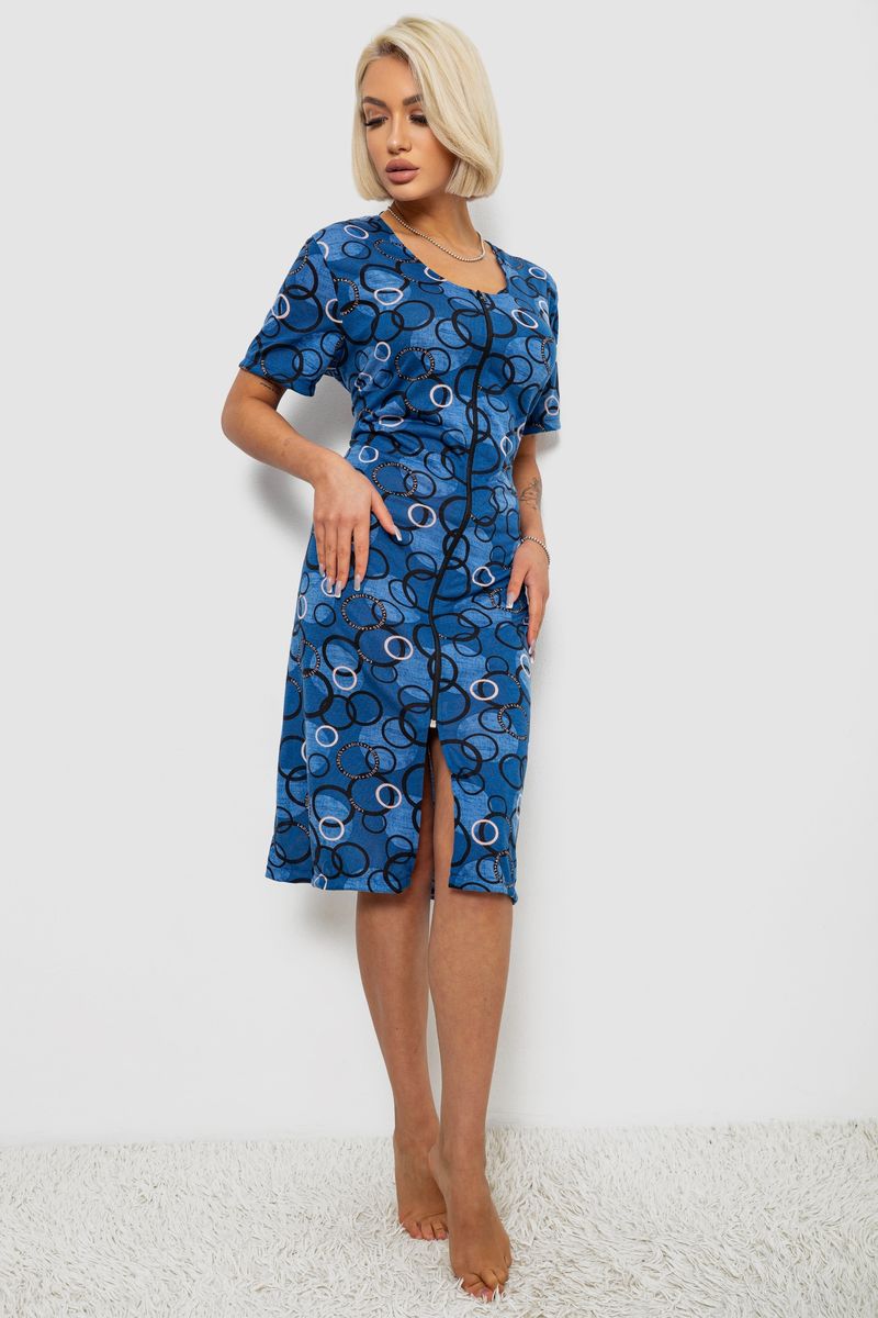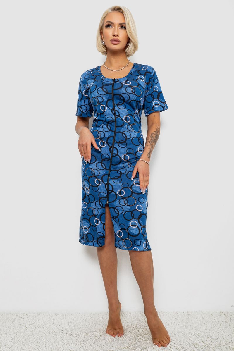 Халат жіночий на блискавці з принтом, колір синій, 257R1030-1