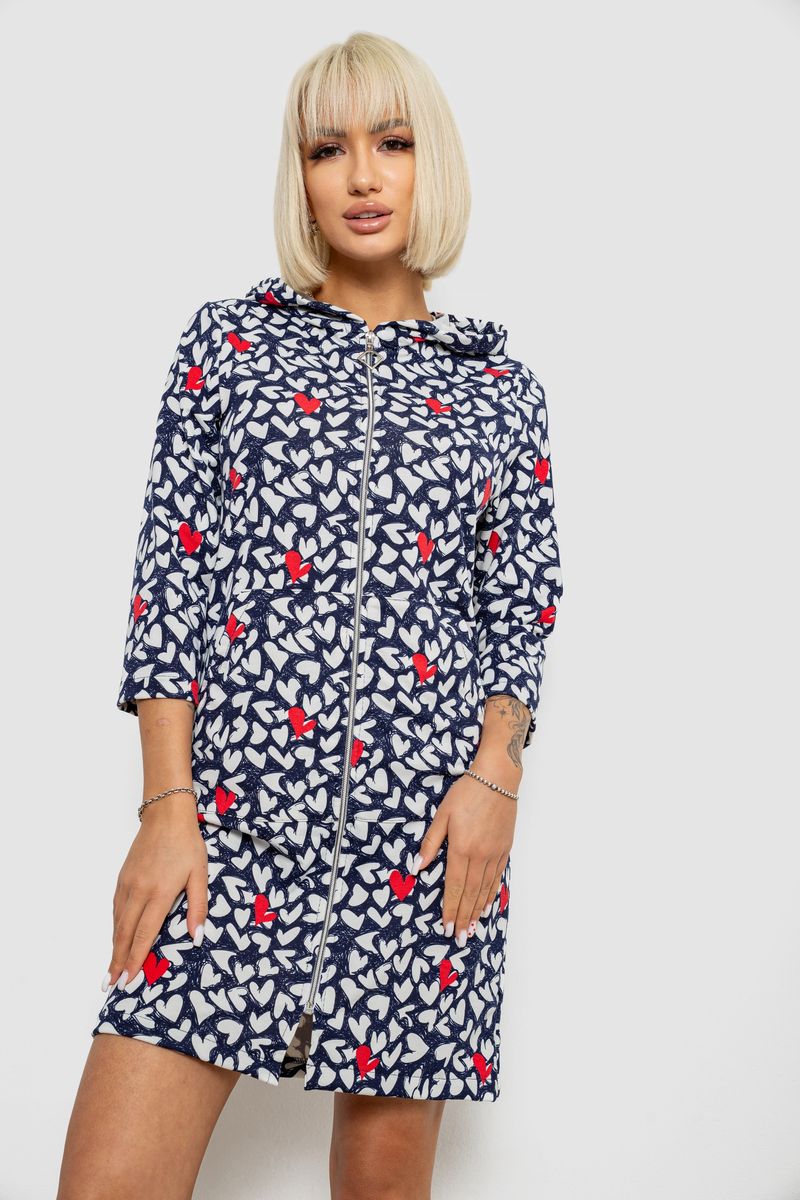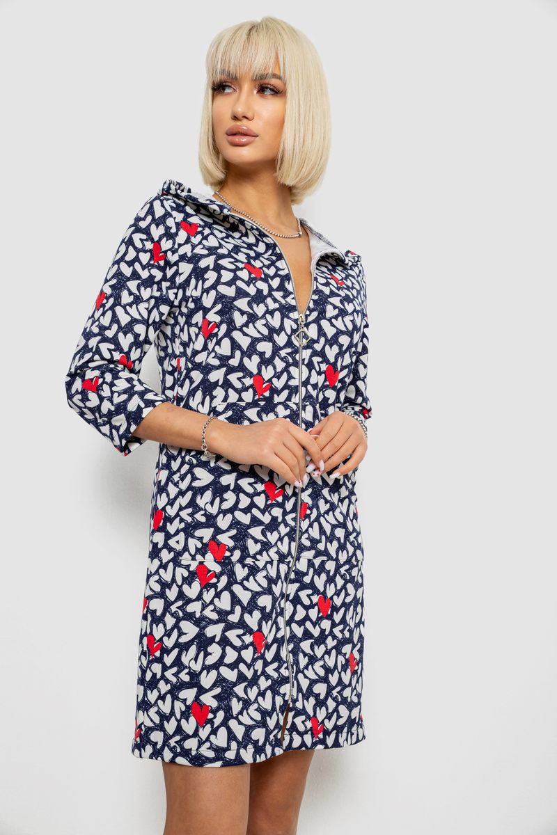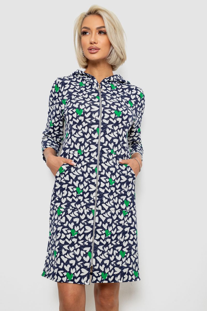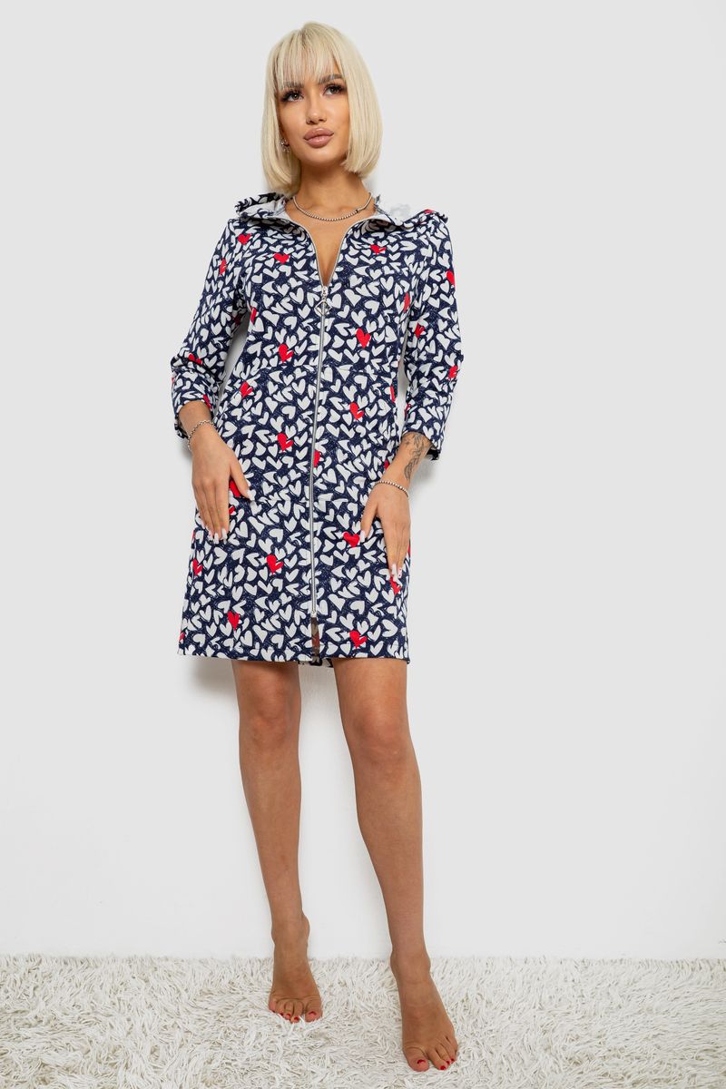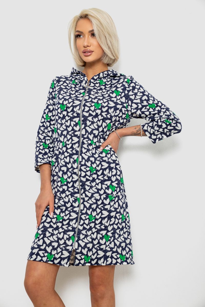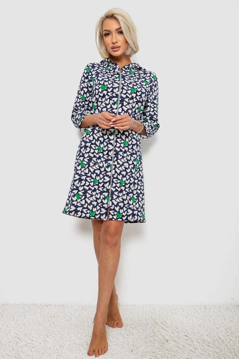 Халат жіночий на блискавці з принтом, колір синьо-білий, 257R1026