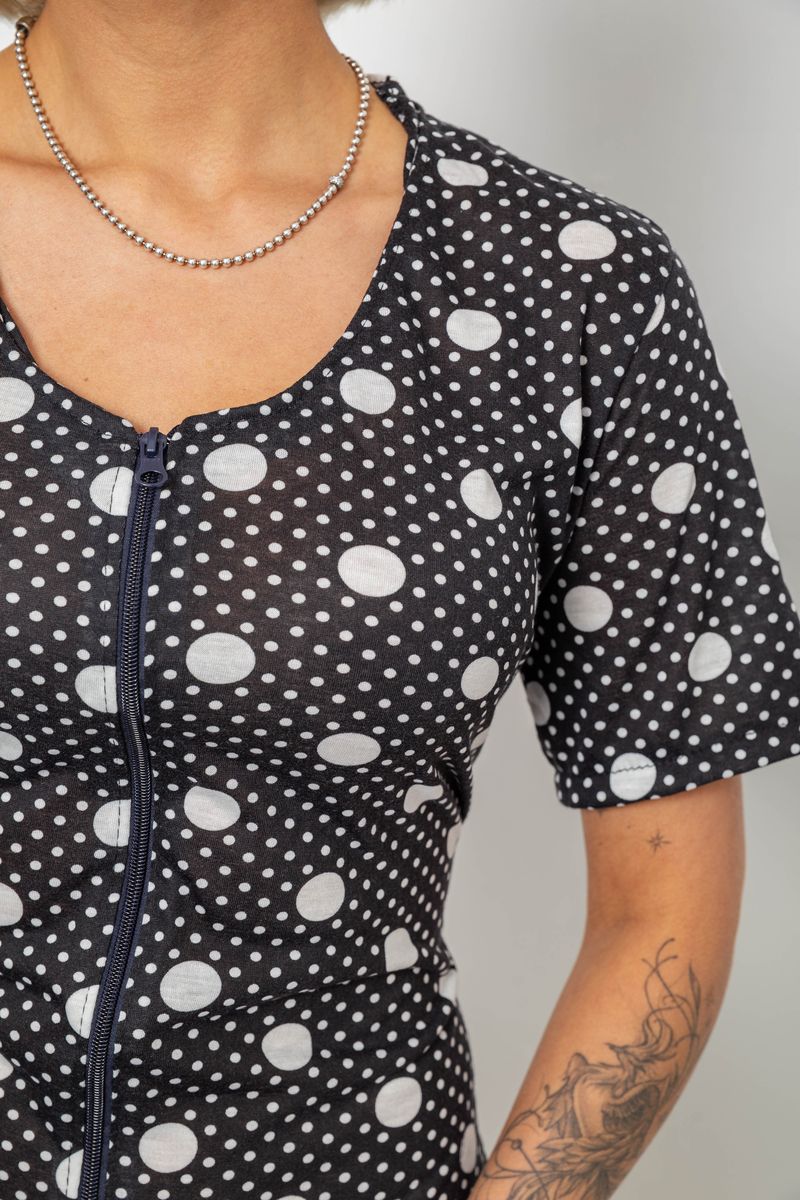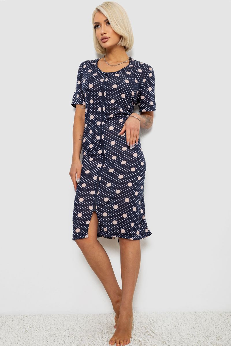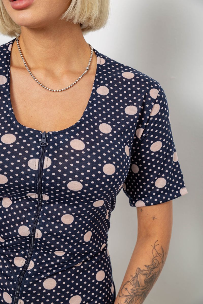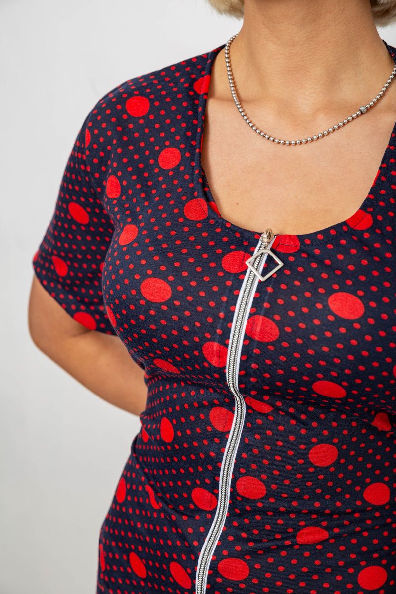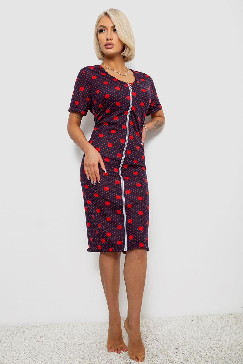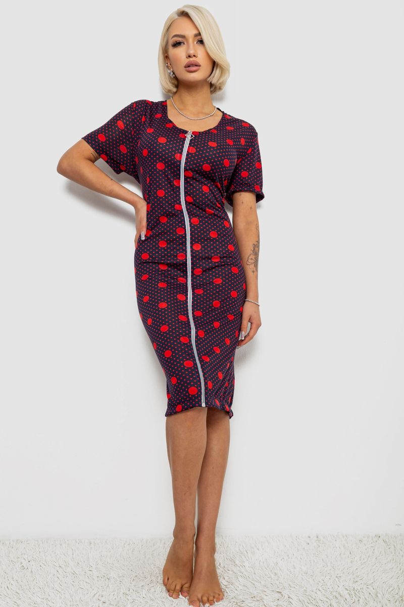 Халат жіночий на блискавці в горох, колір синьо-червоний, 257R1030-5