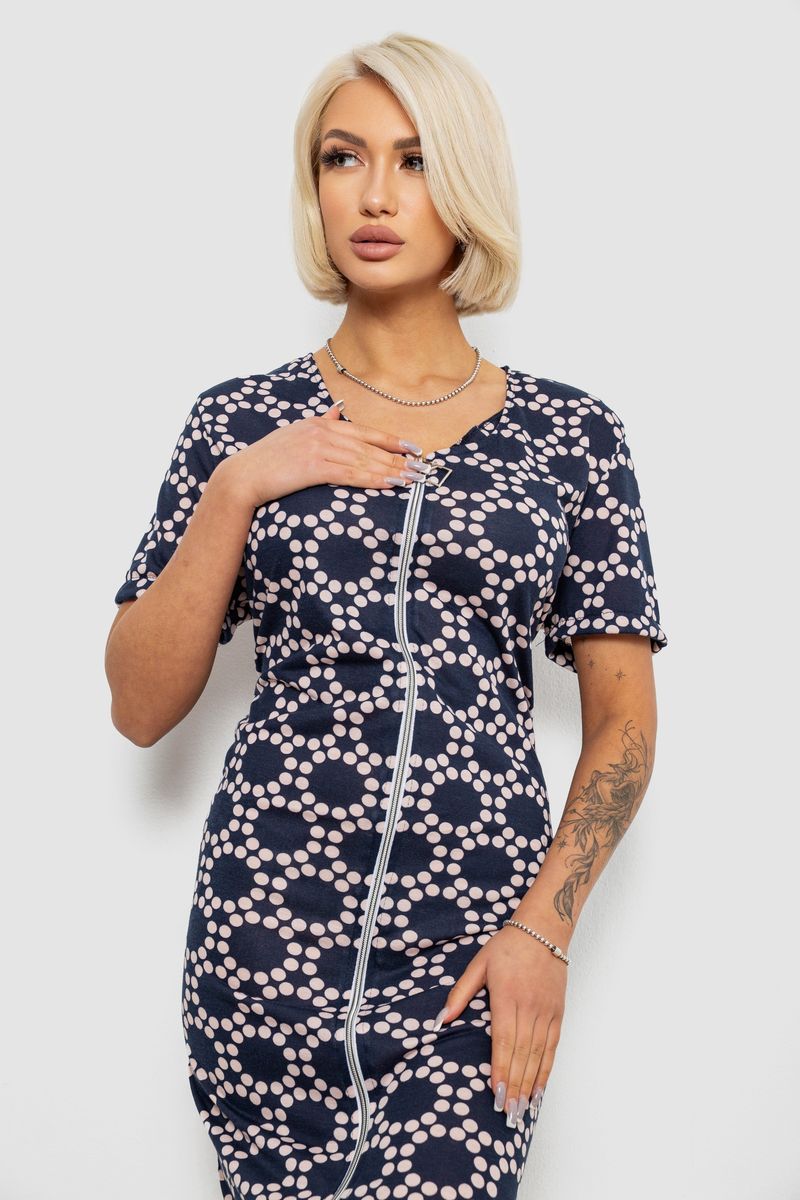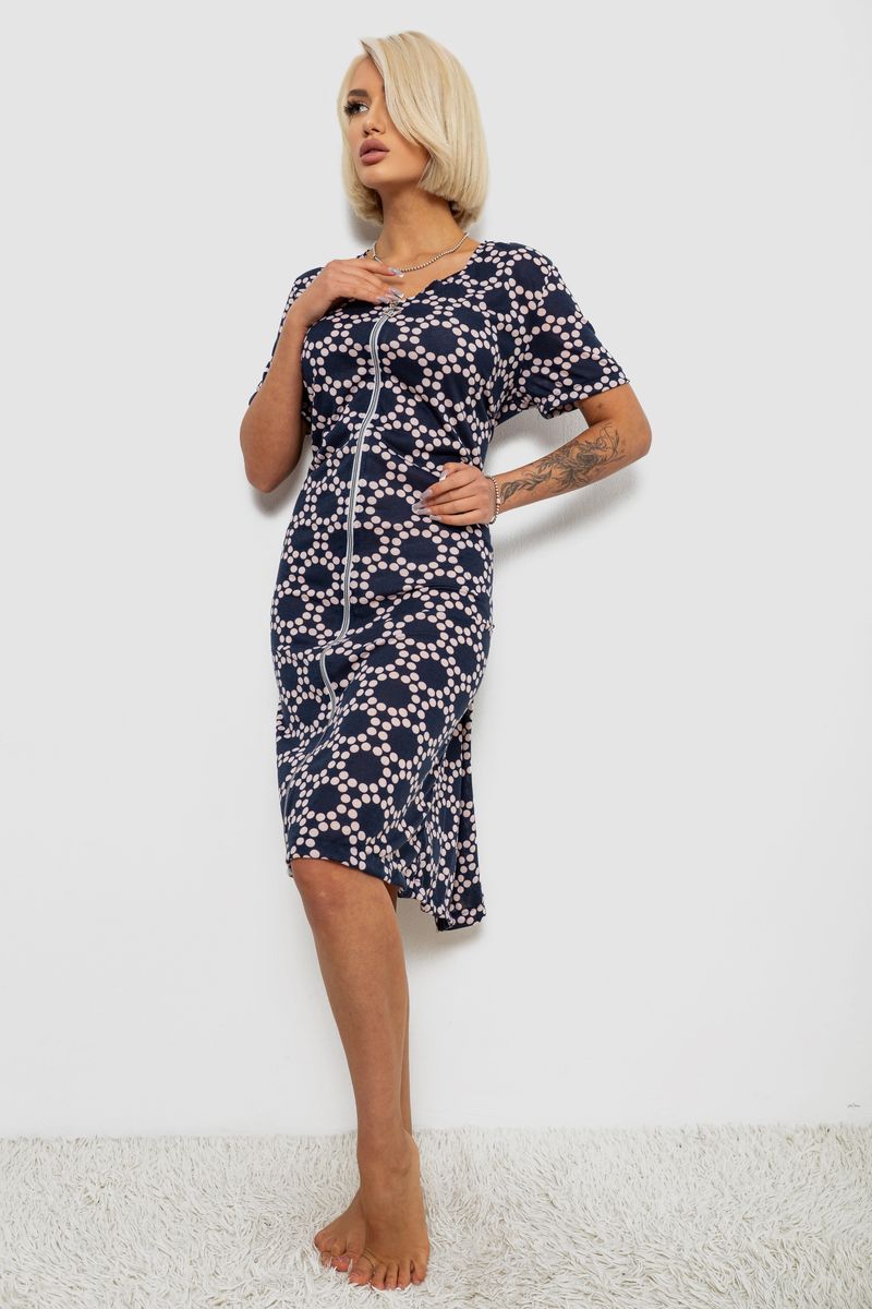 Халат жіночий на блискавці в горох, колір синій, 257R1030-3 : Колір - Синій, Розмір - XL-XXL (арт. 257R1030-3)