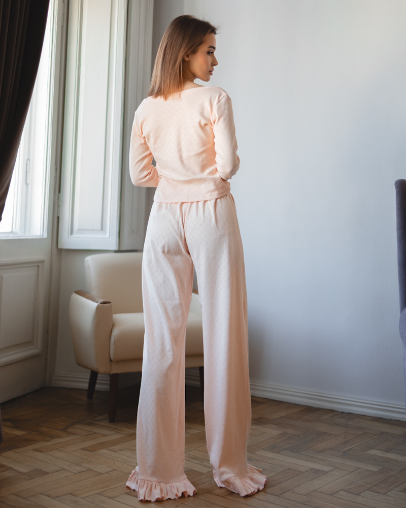 Піжамний костюм-трійка "Nicoletta" (кофта+шорти+штани) тканина трикотаж Персиковий