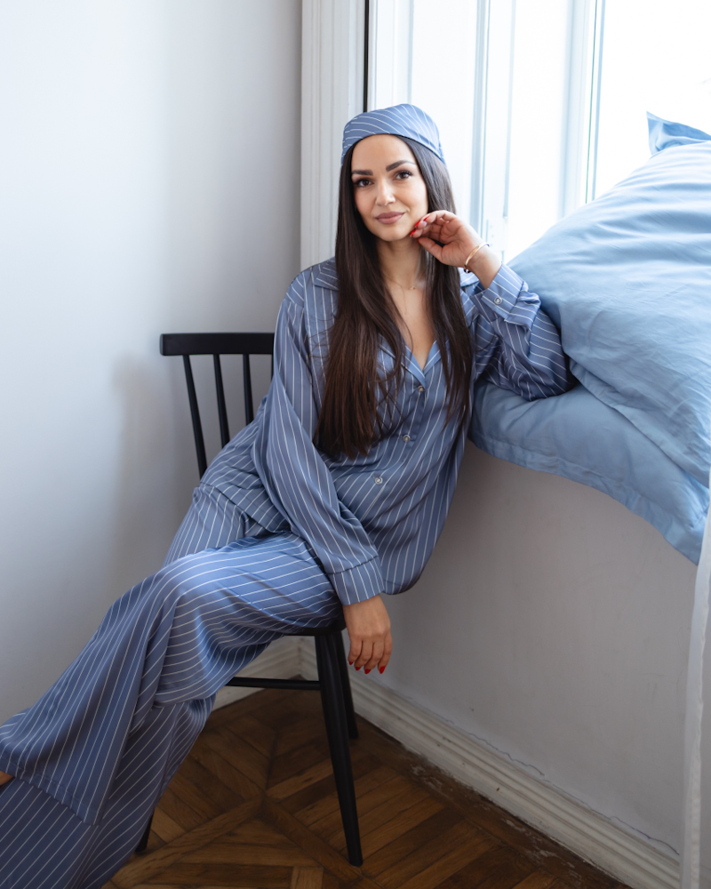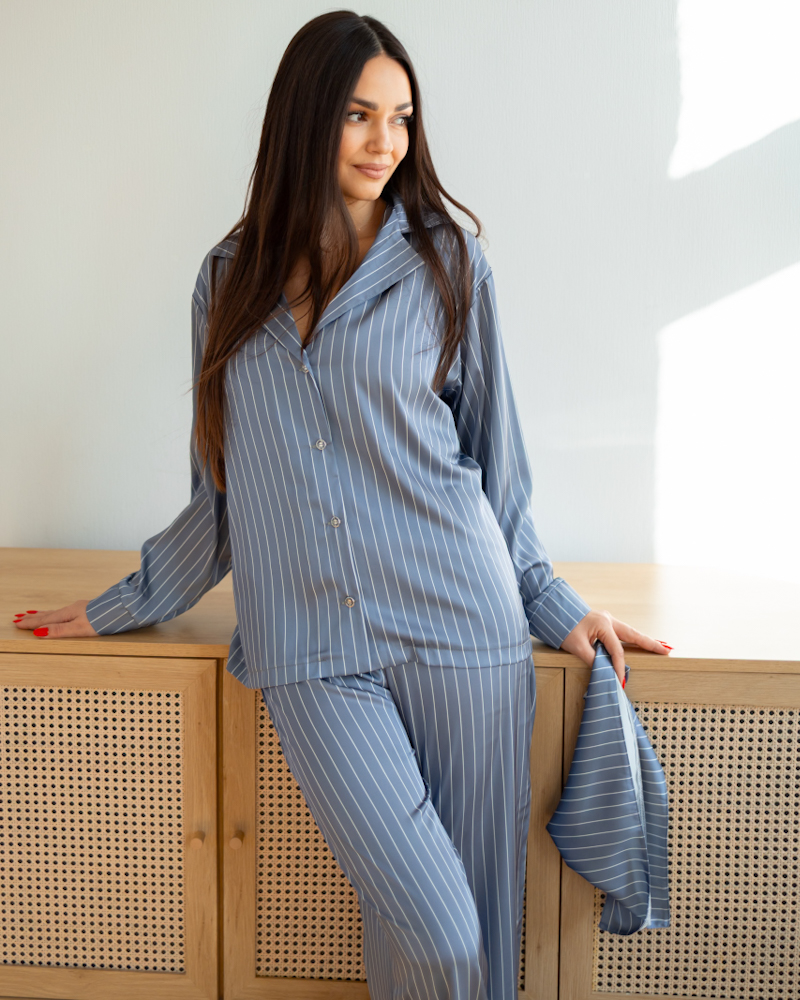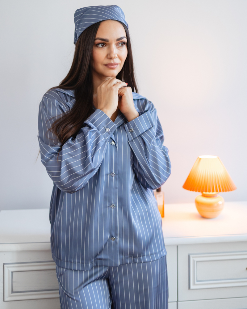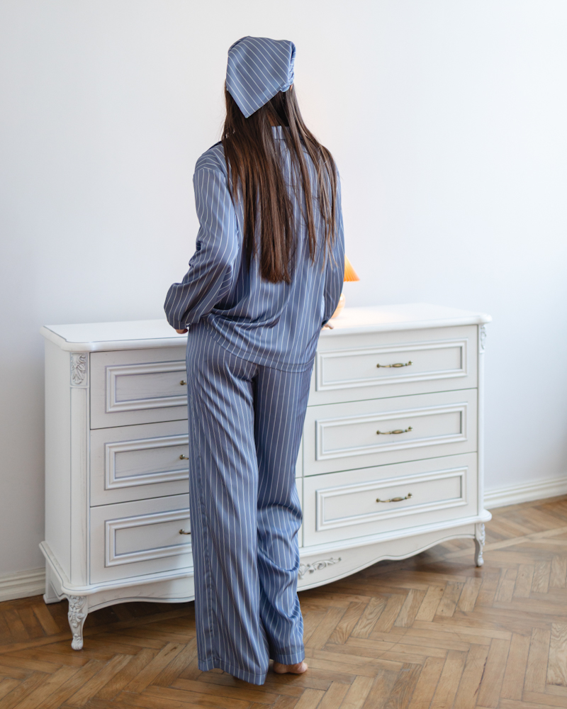 Піжама "Kleo" в смужку шовк Армані + хустинка Синій