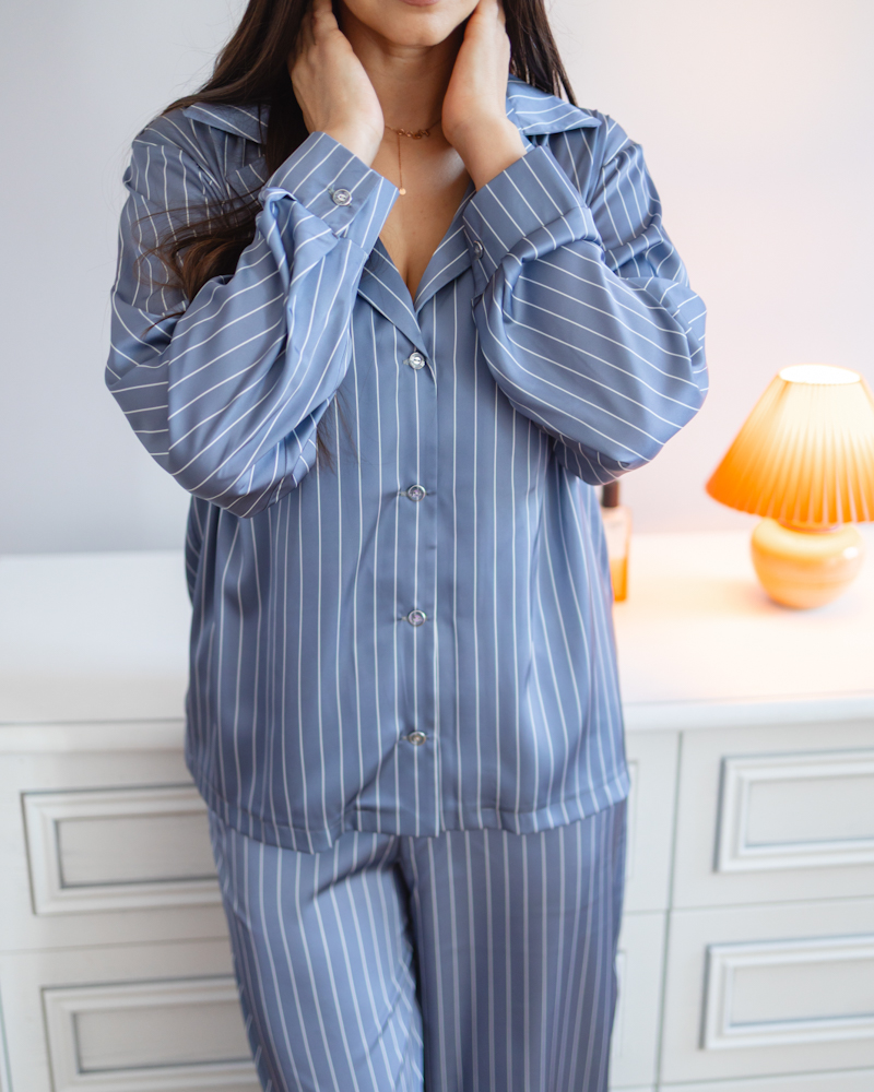 Неймовірно ніжна жіноча піжама із шовку Армані в смужку.