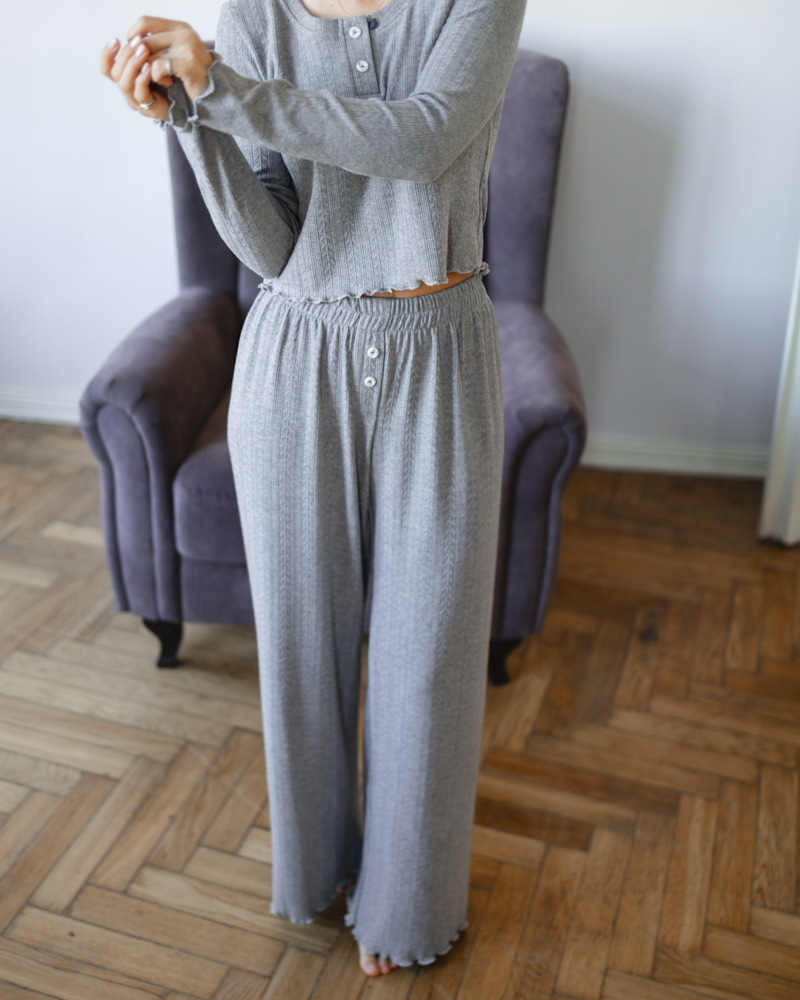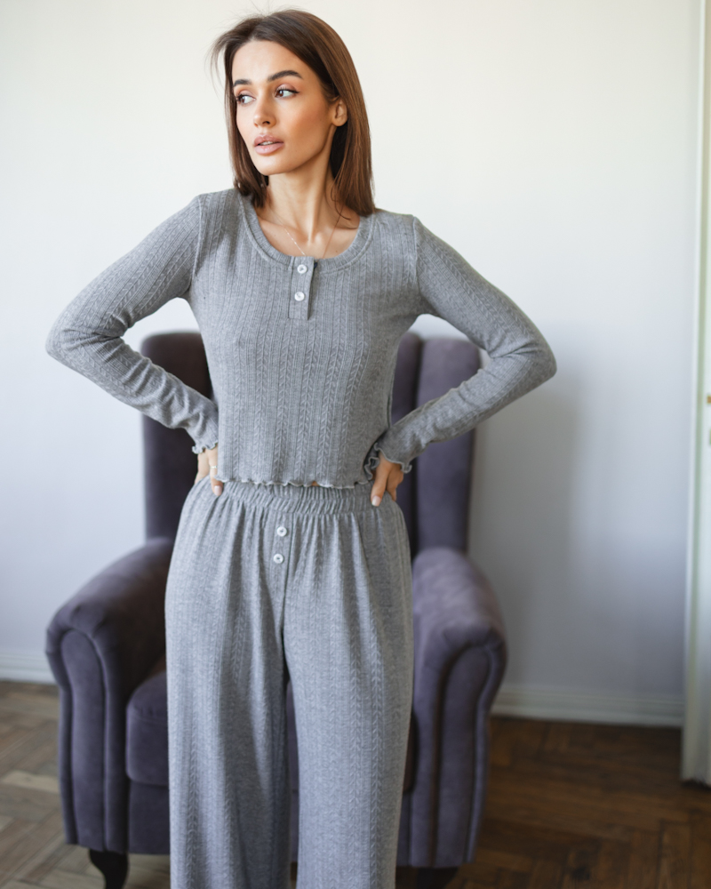 Комплект: кофта з ґудзиками та вільного крою штани на резинці.