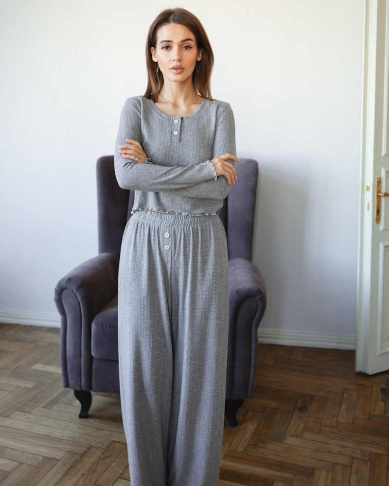 Комплект: кофта з ґудзиками та вільного крою штани на резинці.