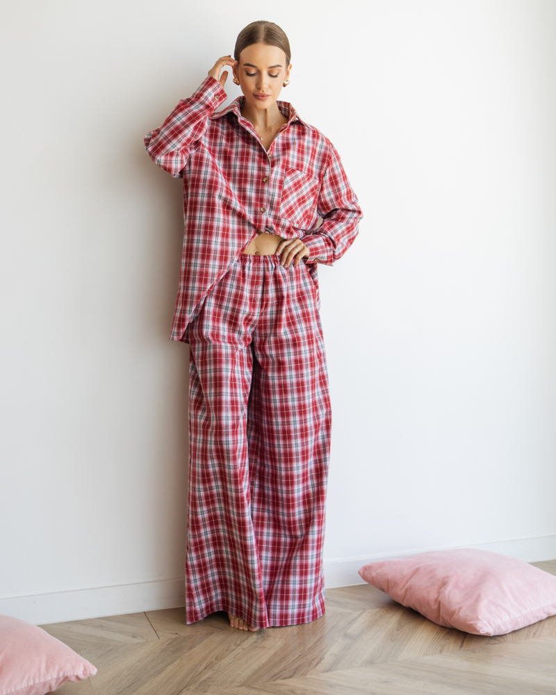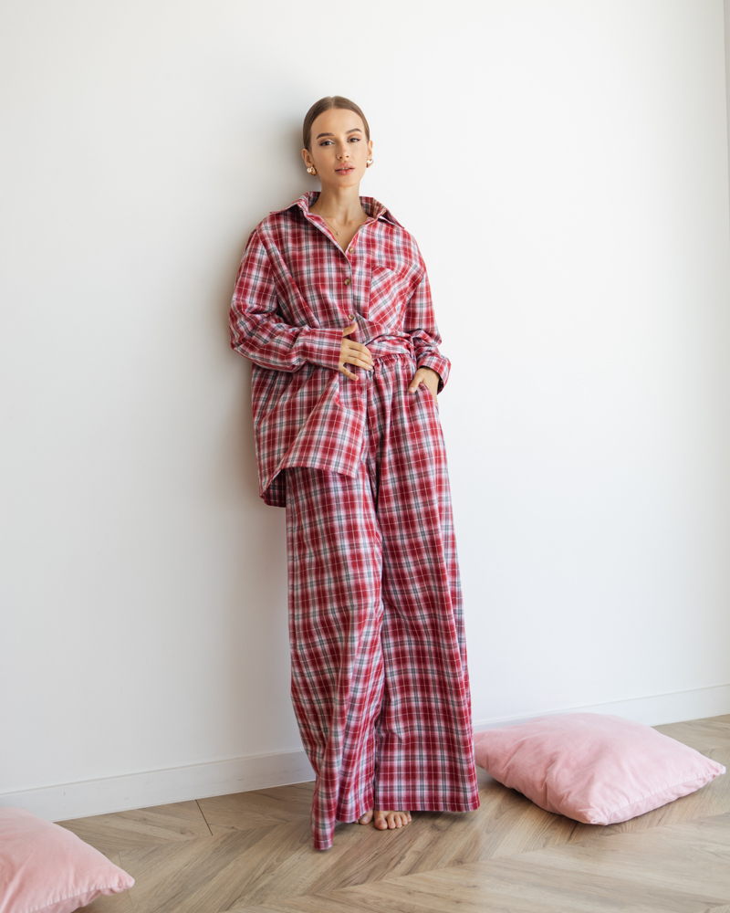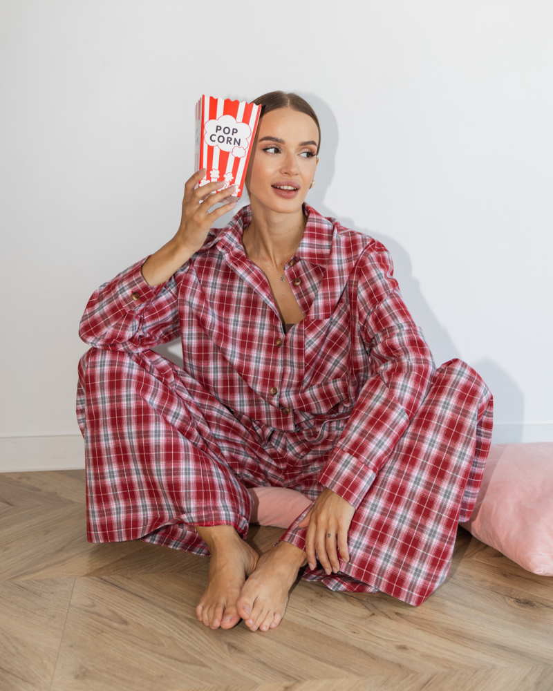 Жіноча піжама в клітинку з якісної турецької тканини байка.