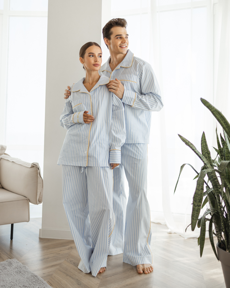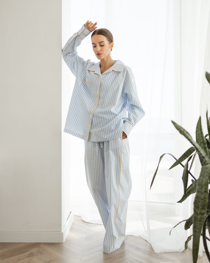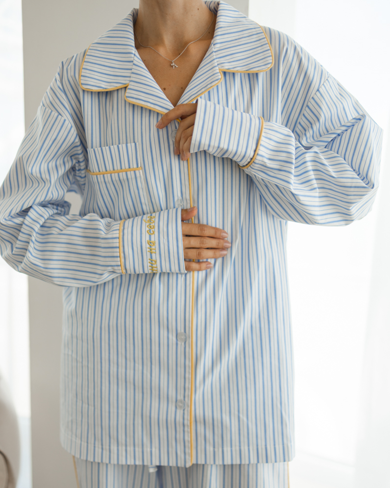 Легка та зручна жіноча піжама з натуральної тканини бавовна в класичному стилі.