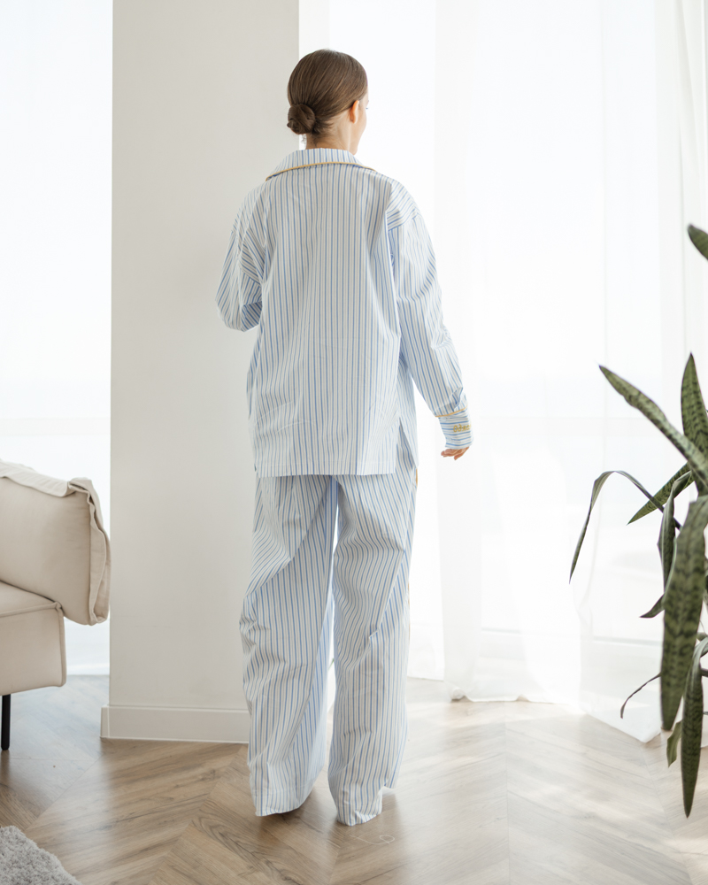 Легка та зручна жіноча піжама з натуральної тканини бавовна в класичному стилі.