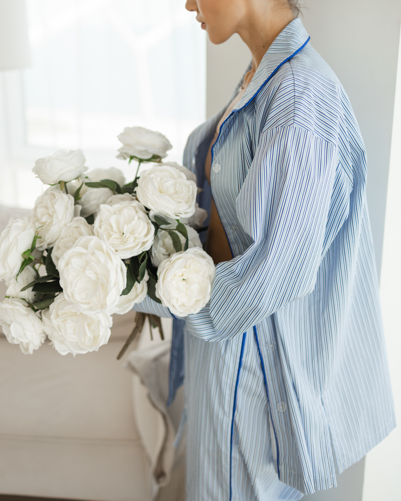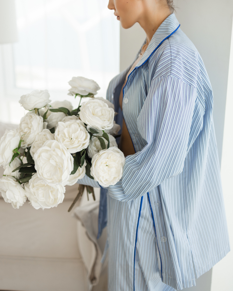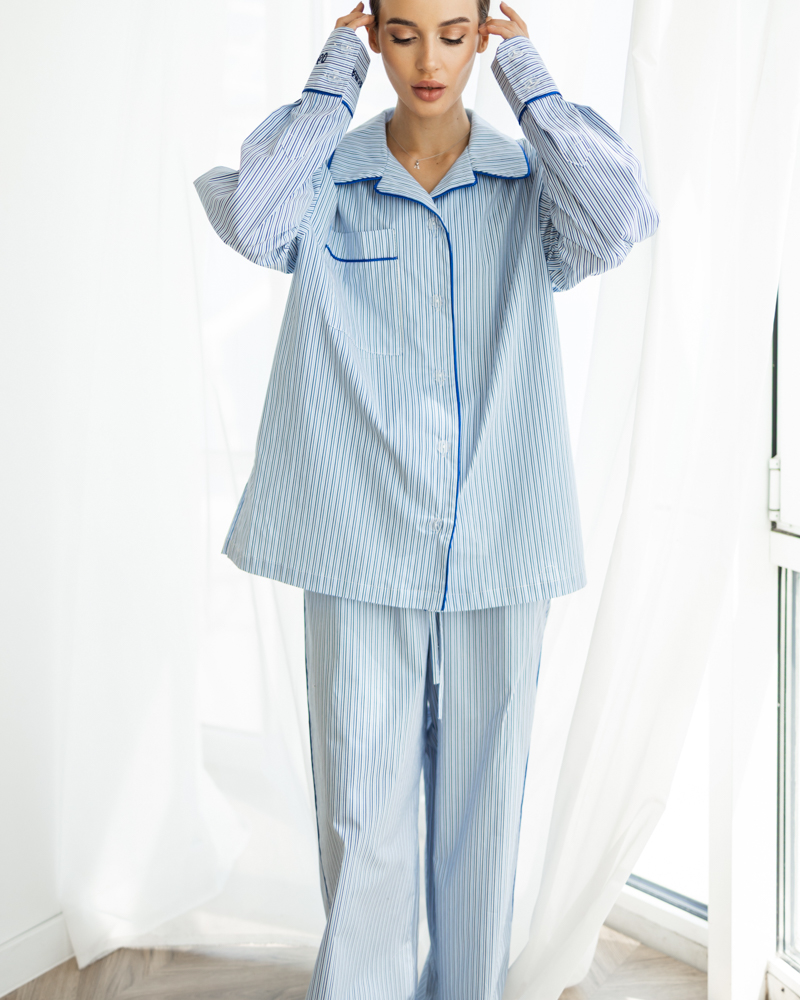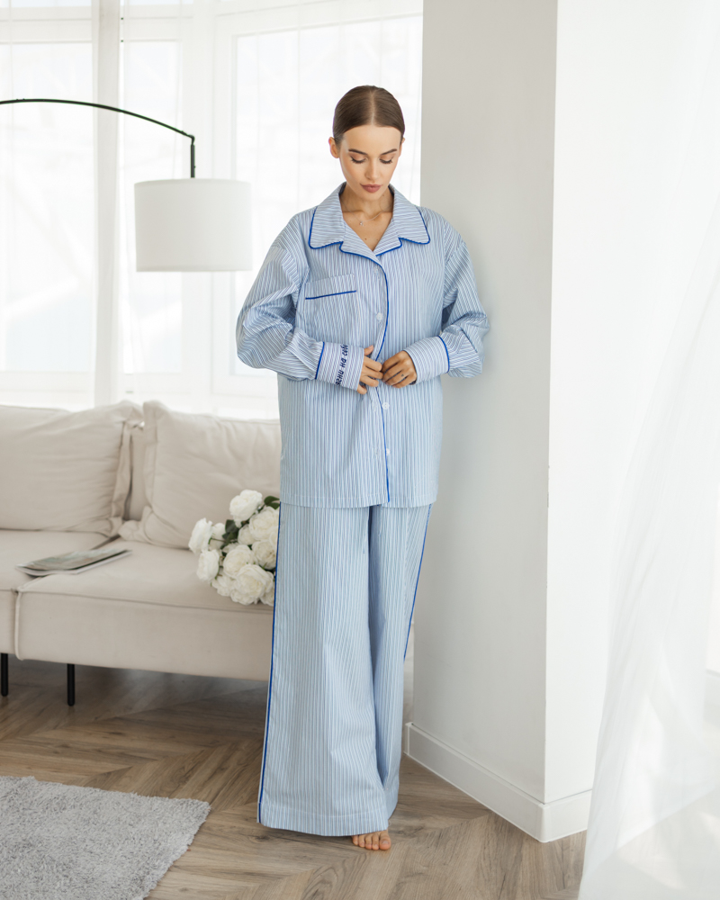Легка та зручна жіноча піжама з натуральної тканини бавовна в класичному стилі.