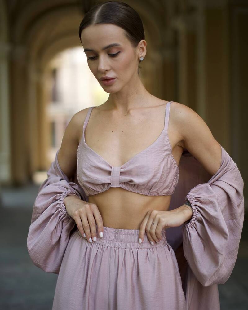 Піжамний костюм-трійка із якісного ніжного шліфованого льону, легкий, повітряний та неймовірно приємний до тіла.