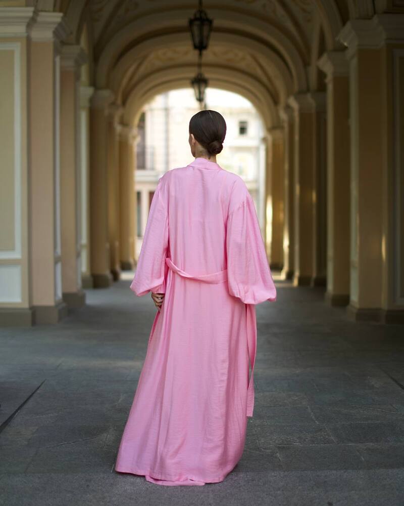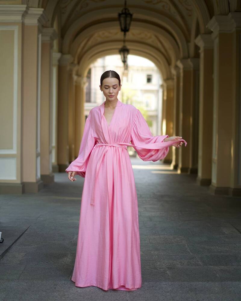 Піжамний костюм-трійка Diana шліфований льон (бра+халат+штани) Рожевий