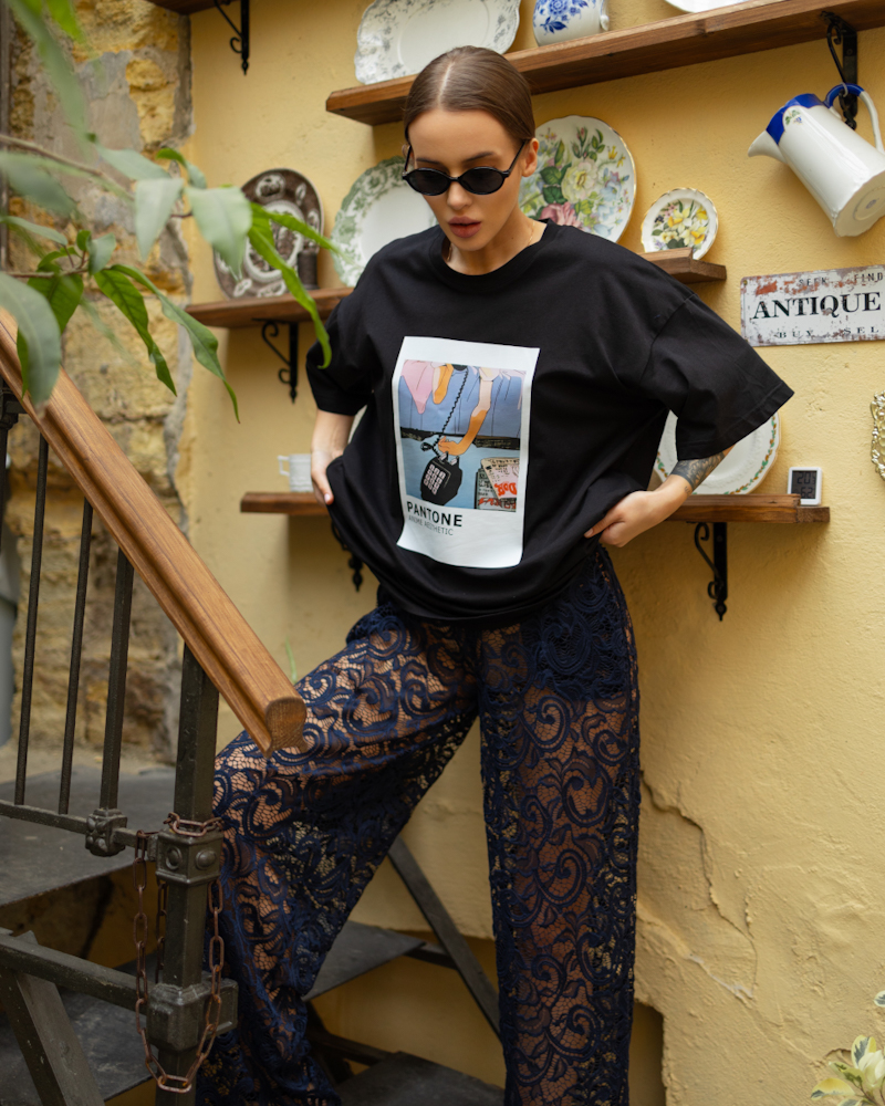 Штани з тканини мереживо Синій 4805 QC фото - Luxbikini