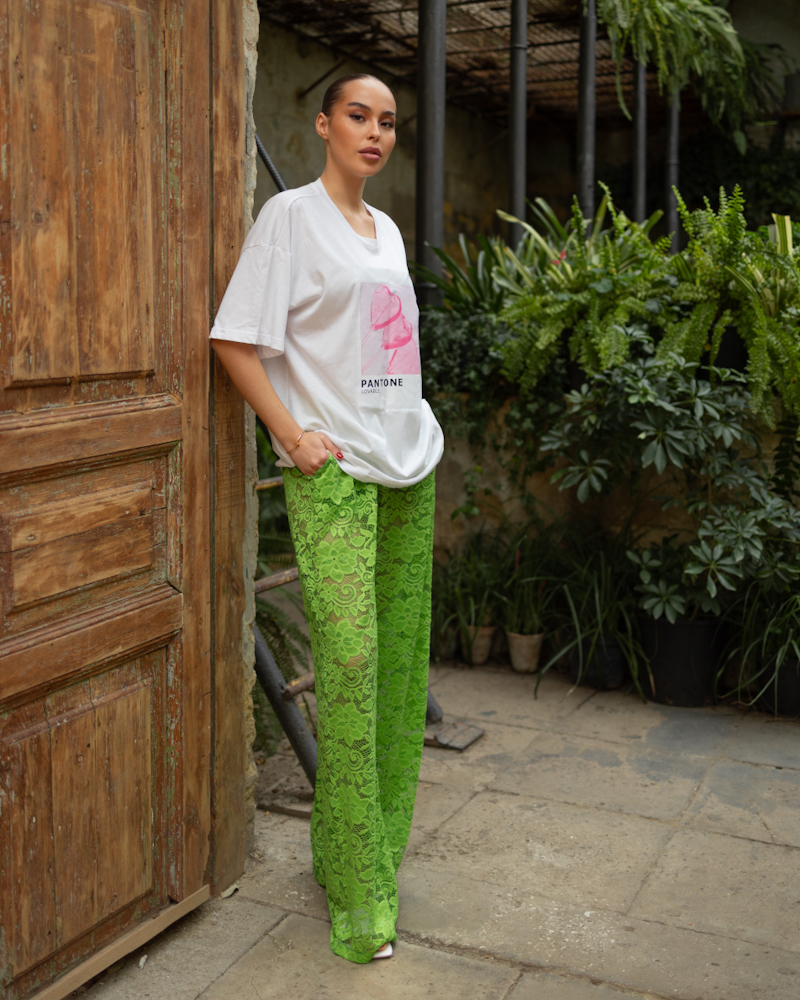 Штани з тканини мереживо Зелений