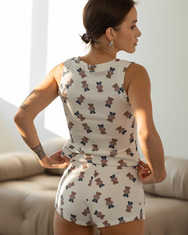 Жіноча піжама з медведиками з тканини трикотаж рубчик.