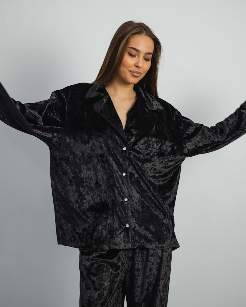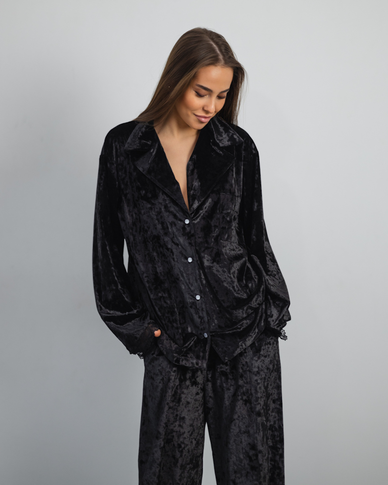 Піжама "Vella" мармуровий велюр + мереживо Чорний