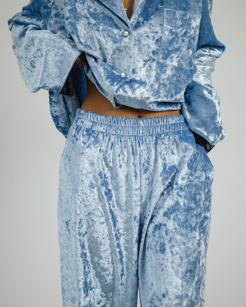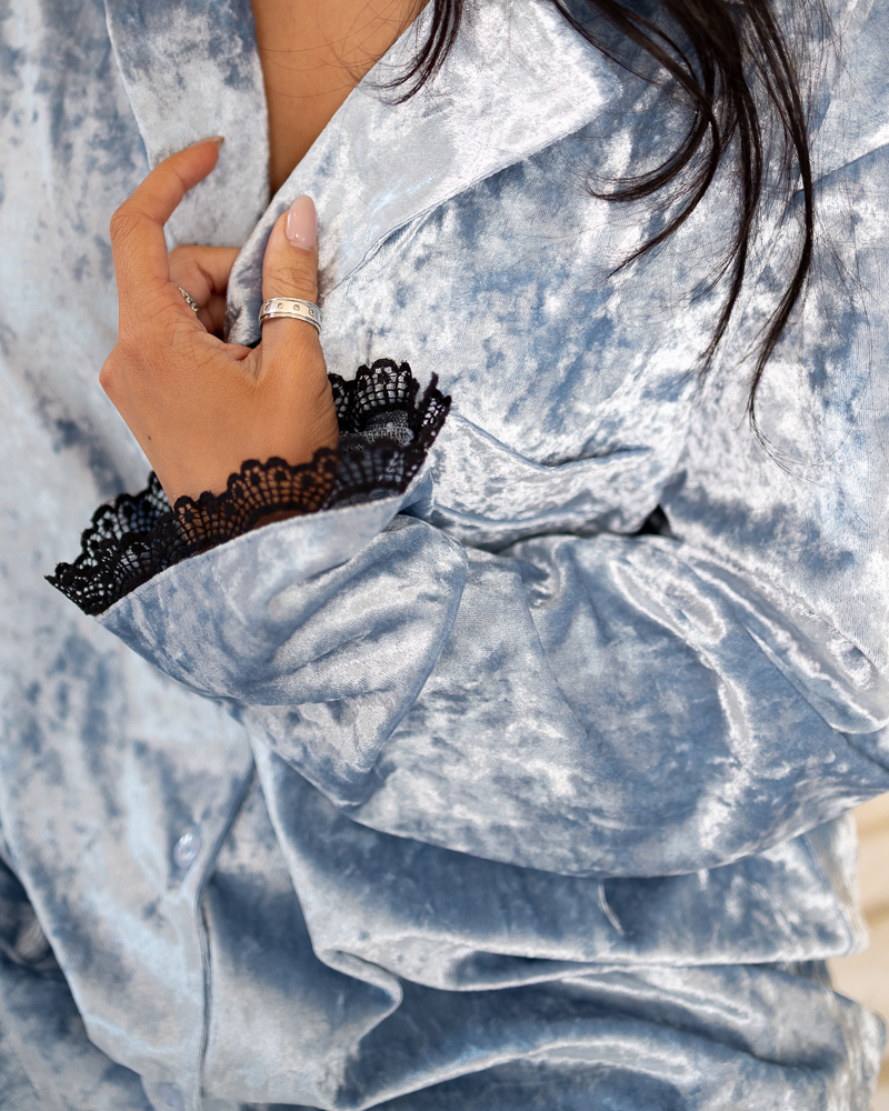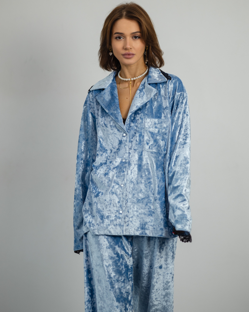 Піжама "Vella" мармуровий велюр + мереживо Блакитний