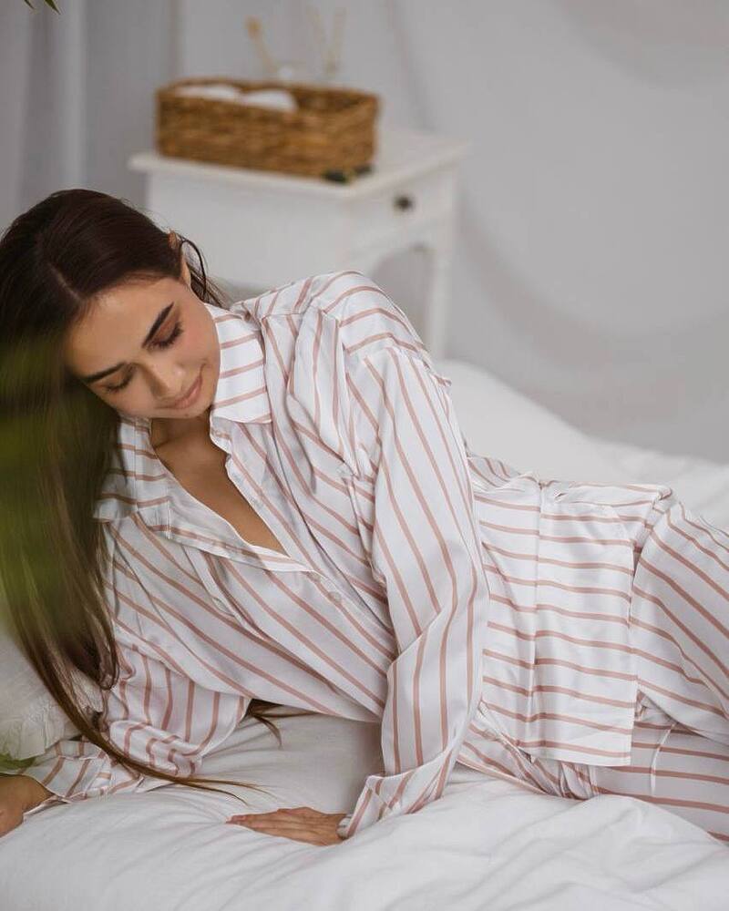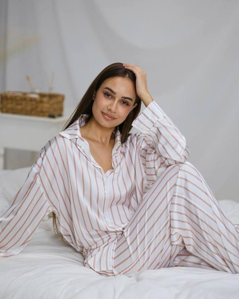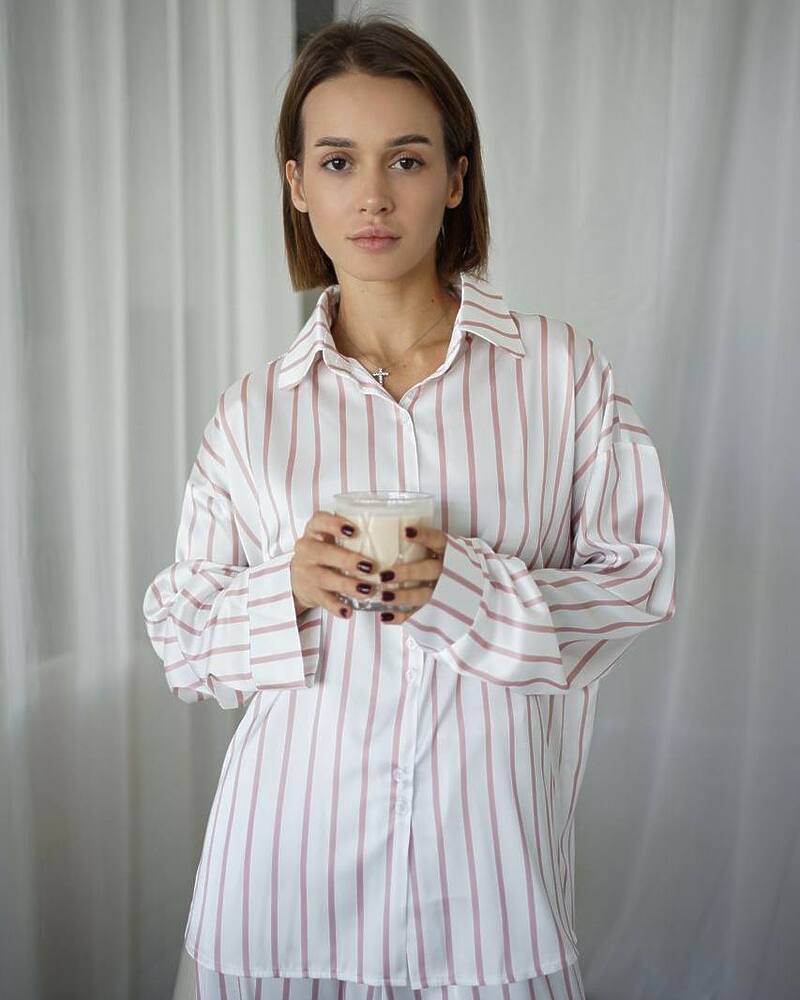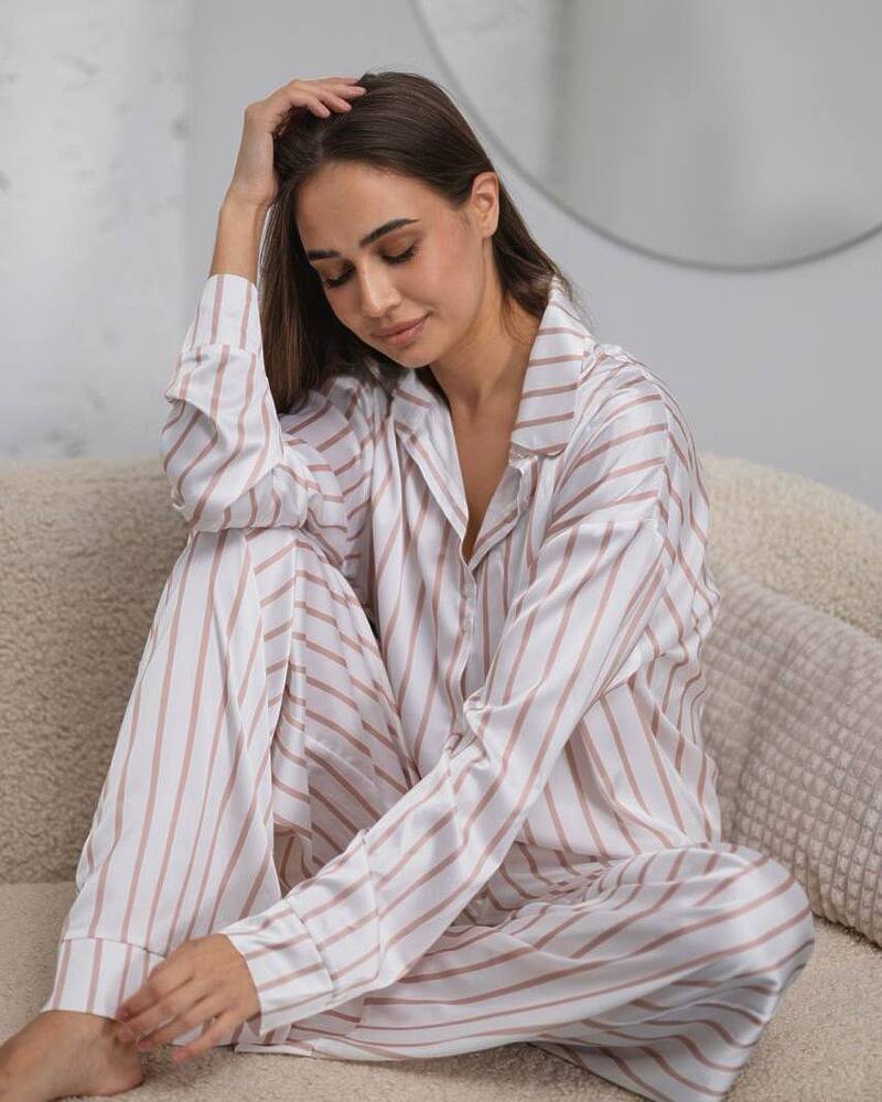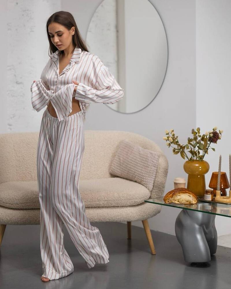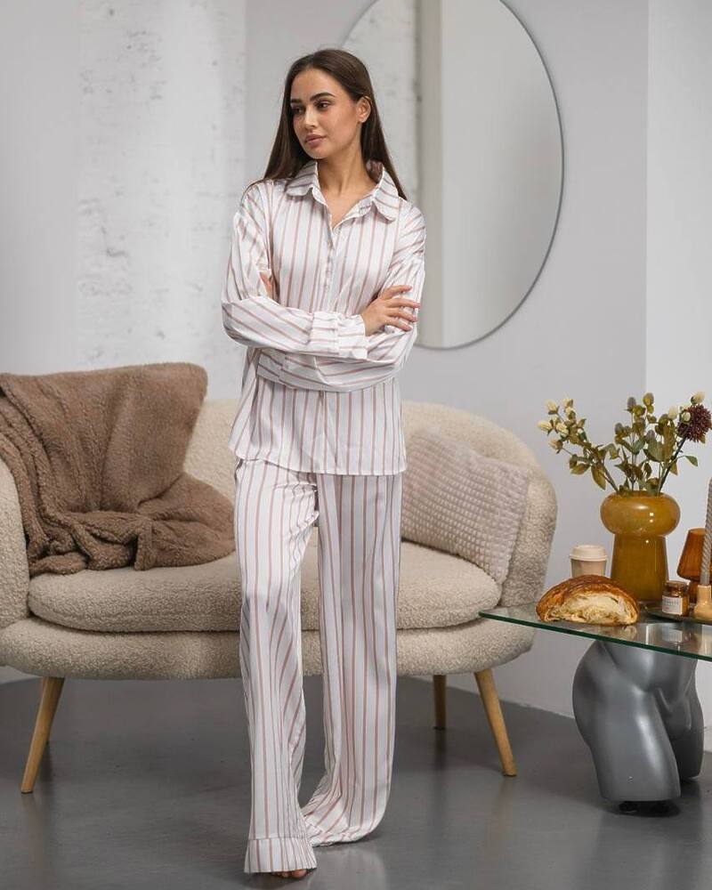 Жіноча піжама в смужку з шовкової тканини сатин.