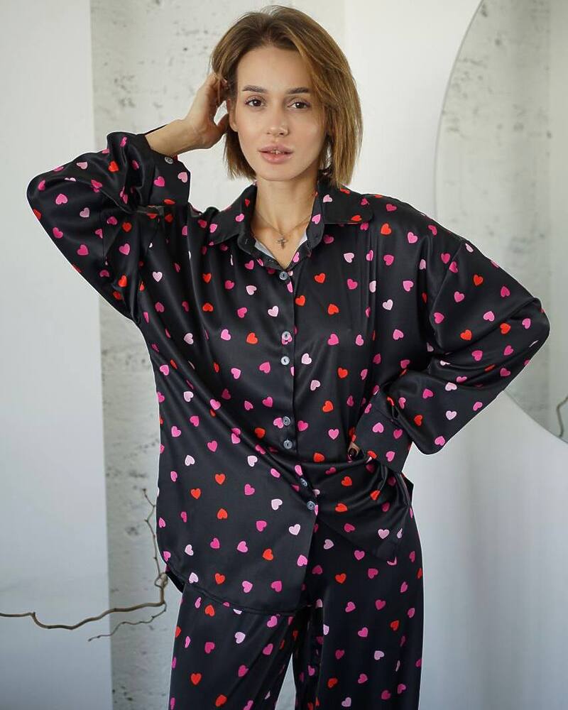 Жіноча піжама з кольоровими сердечками з шовкової тканини сатин.