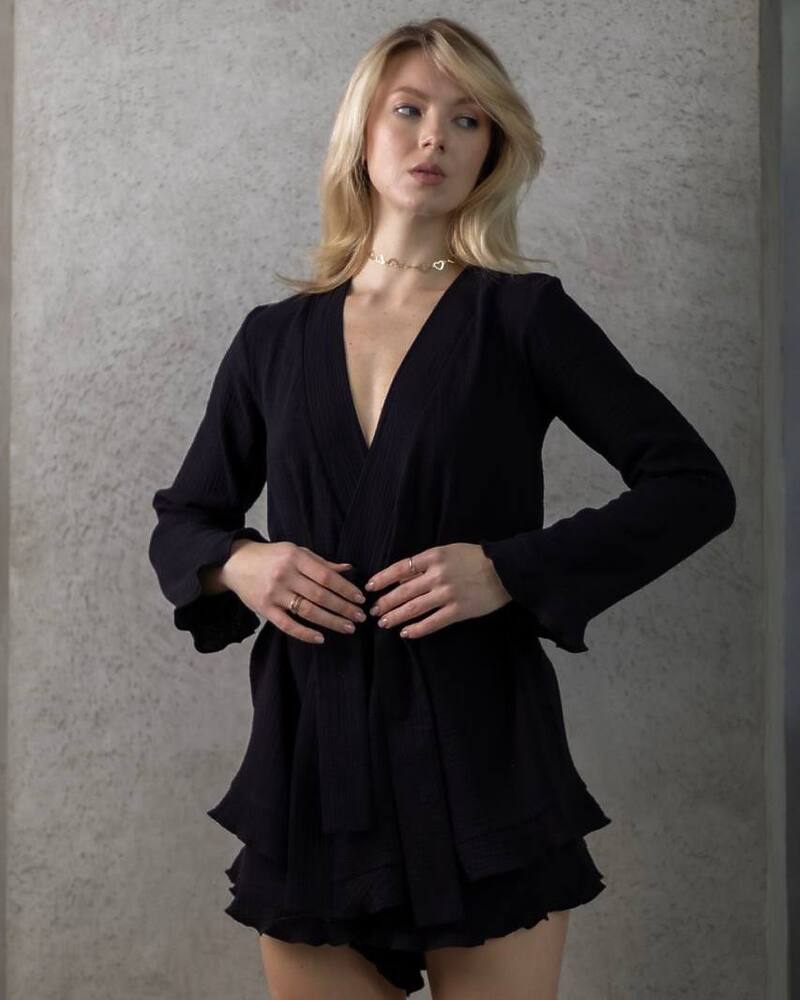Піжамний костюм "Nancy" (халат+ шорти) муслін Чорний