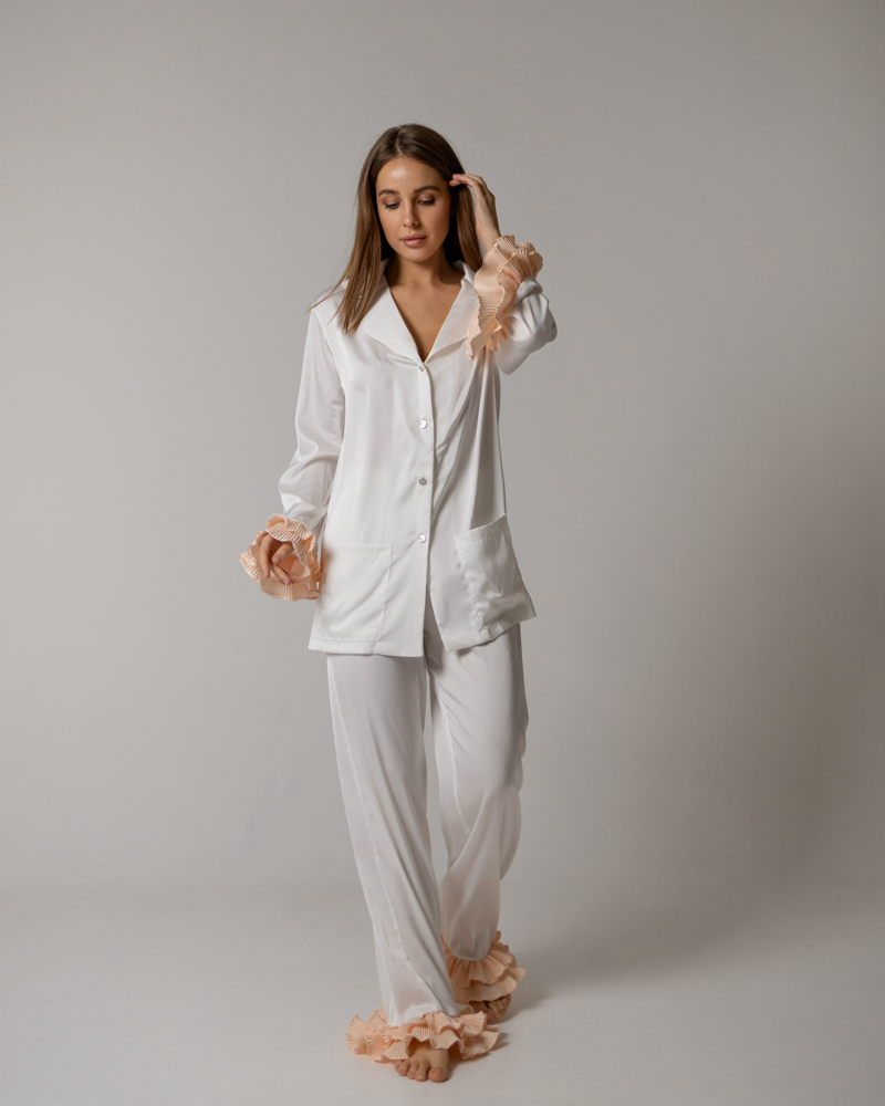 Піжамний костюм-трійка "Volan" (сорочка+бра+штани) Персик