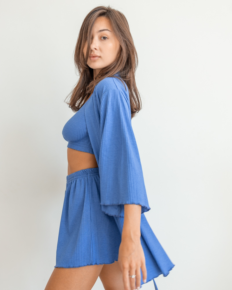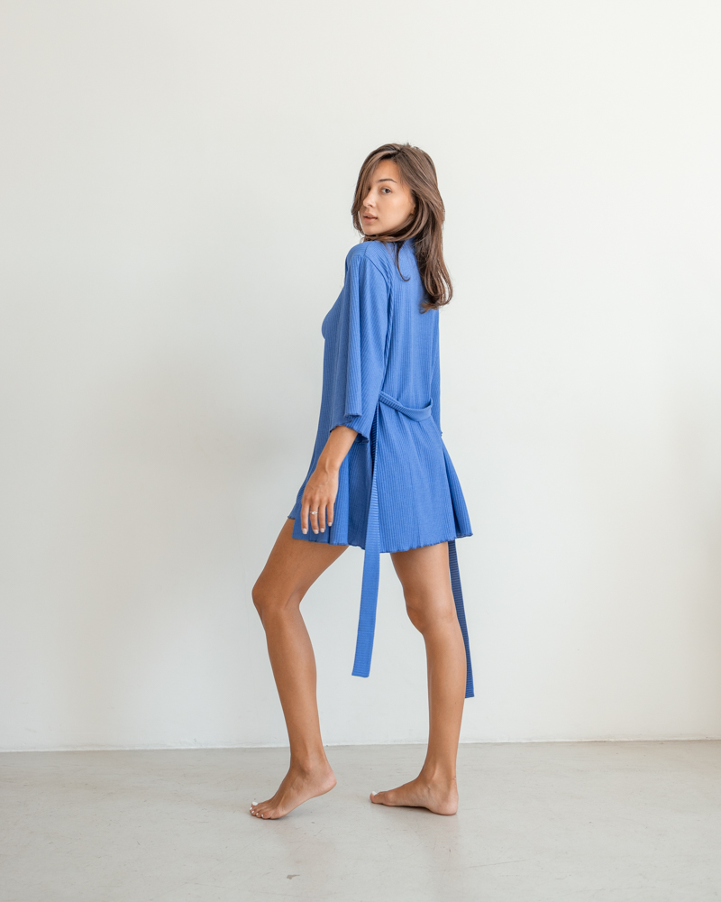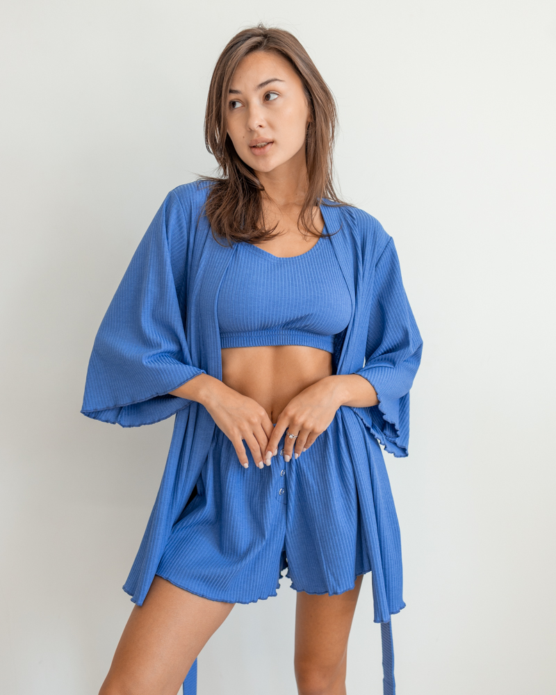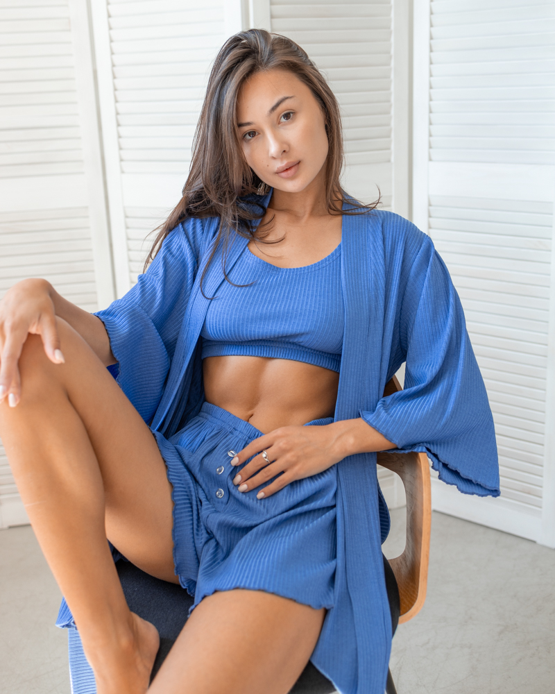 Піжамний костюм трійка з рубчика Dana (халат+топ+шорти) Джинсовий
