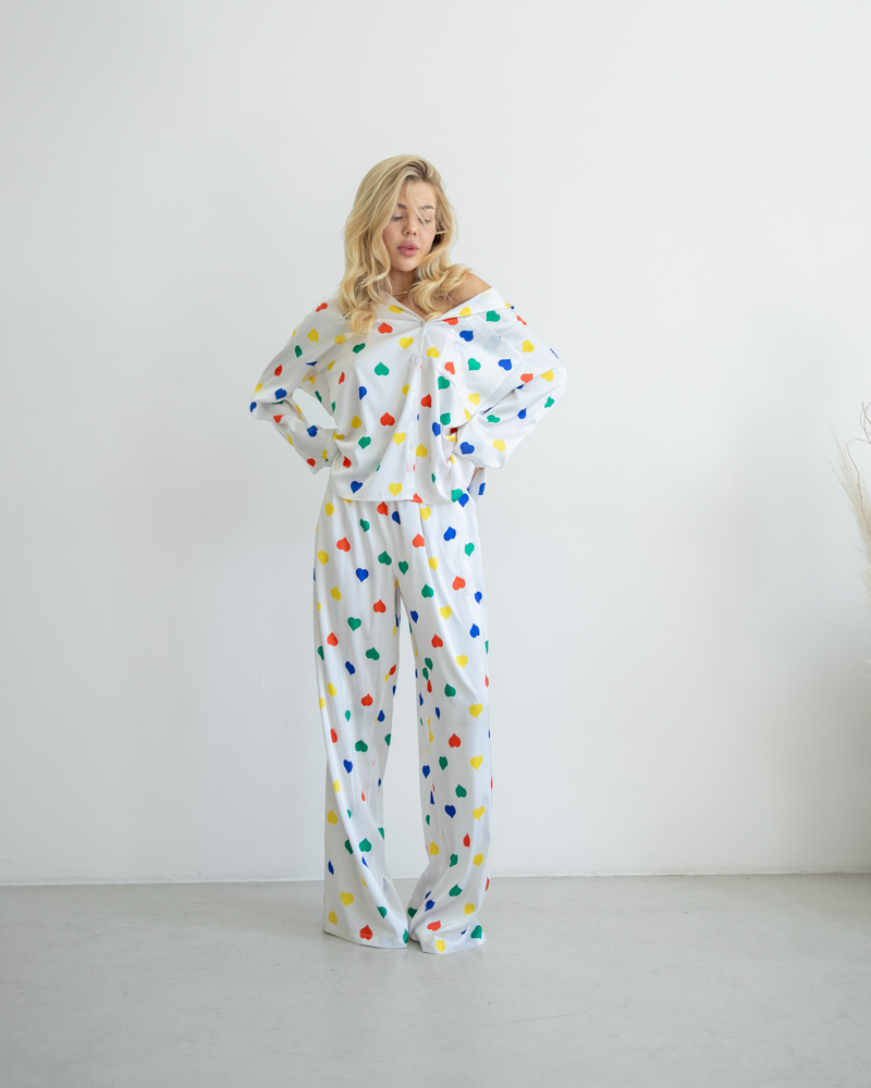 Жіноча піжама з кольоровими сердечками з шовкової тканини Armani.