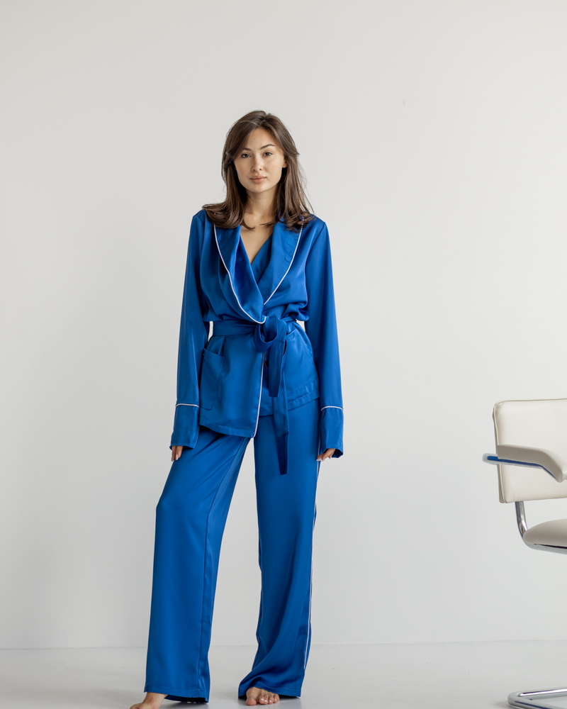 Елегантний та стильний костюм в піжамному стилі із королівського шовку.