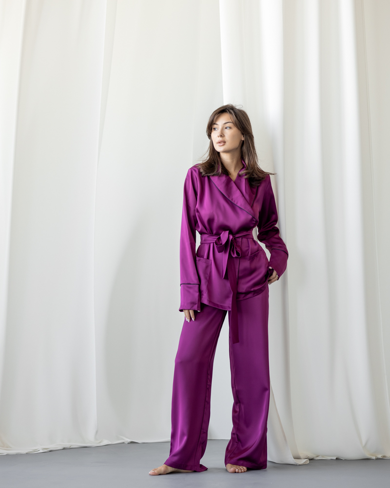 Елегантний та стильний костюм в піжамному стилі із королівського шовку.