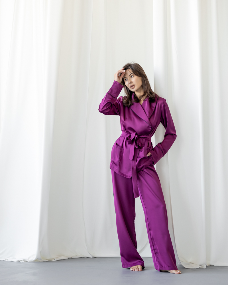 Елегантний та стильний костюм в піжамному стилі із королівського шовку.