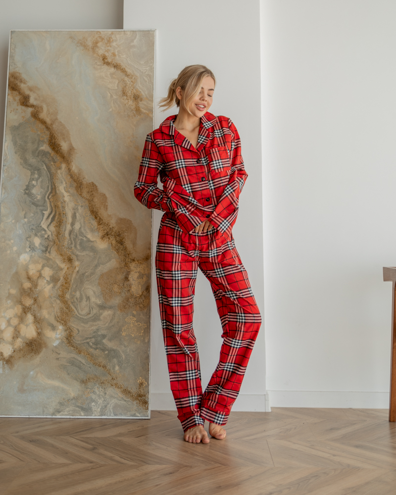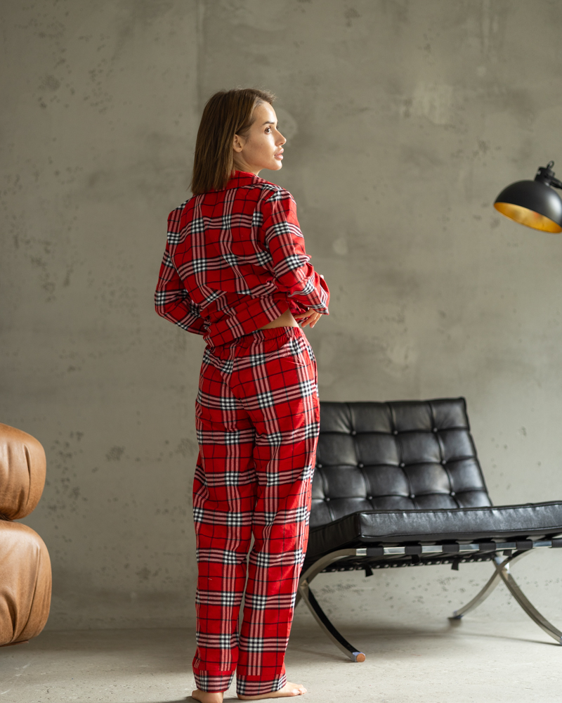 Піжамний костюм у клітинку з якісної тканини байка.