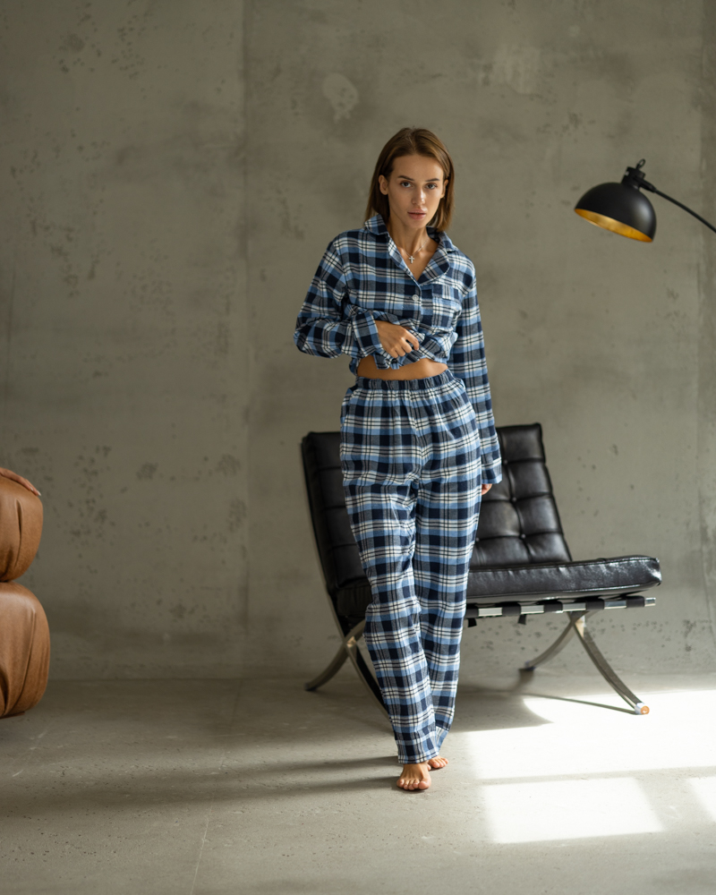 Піжамний костюм у клітинку з якісної тканини байка.