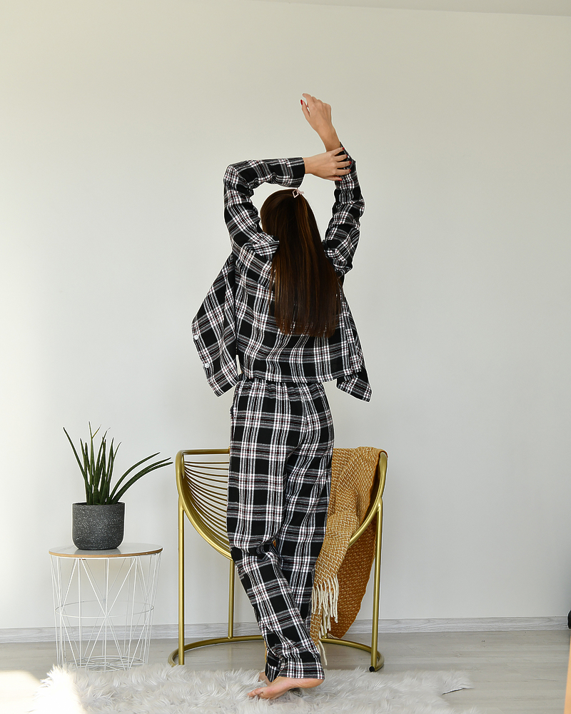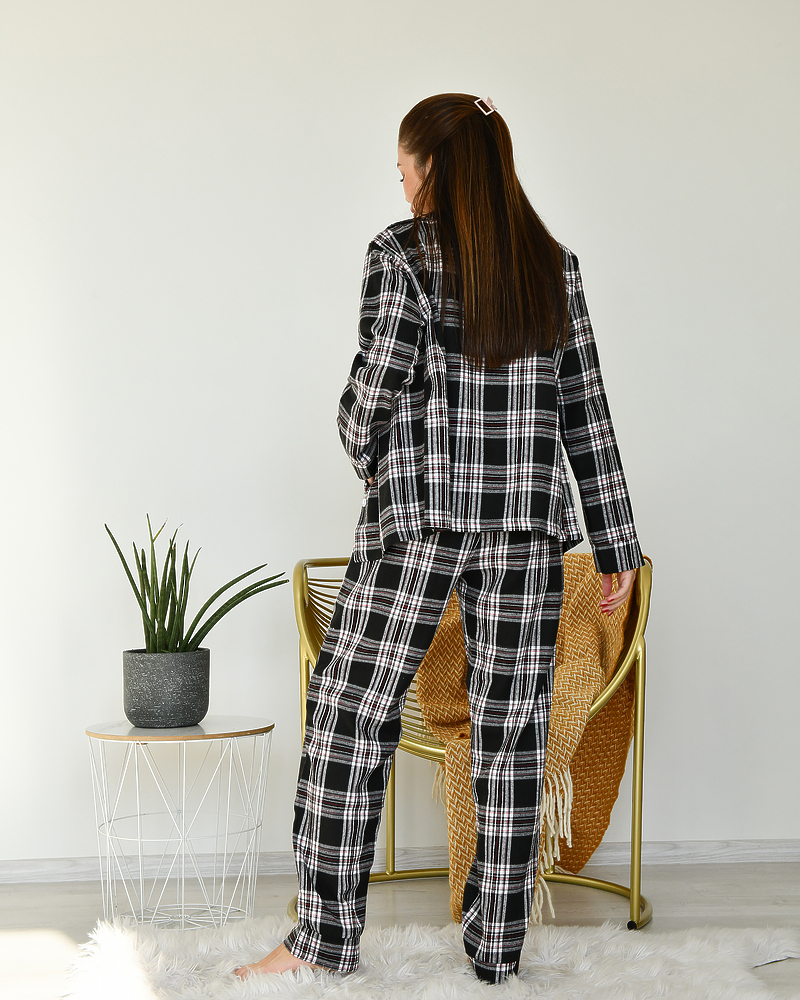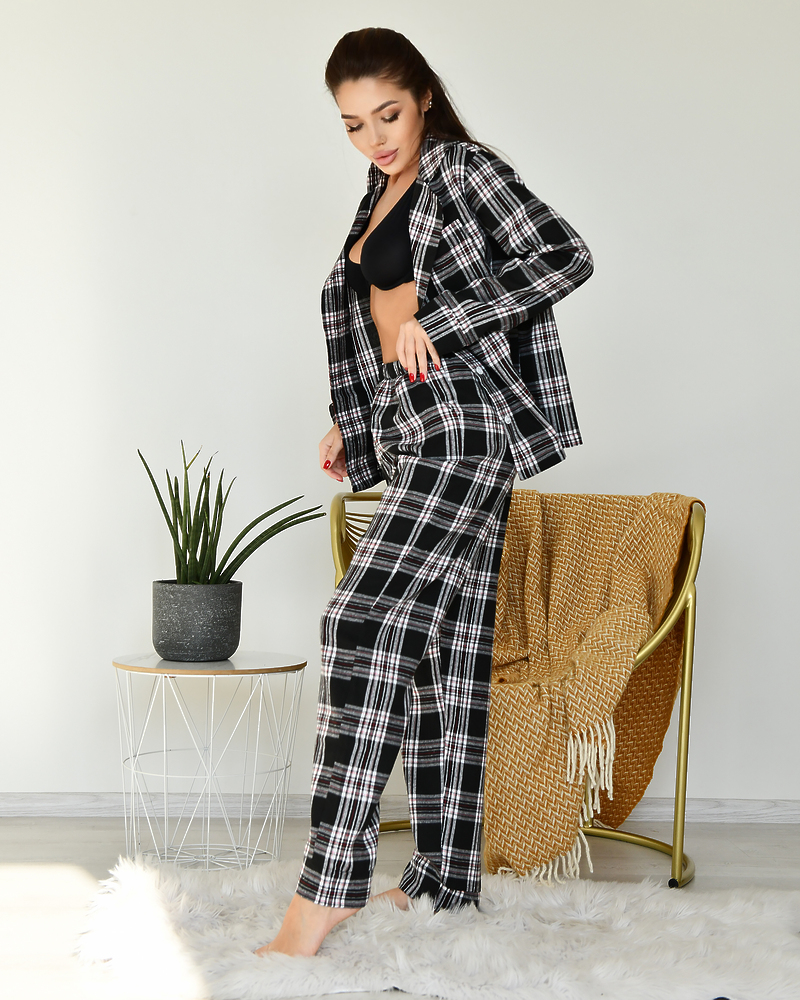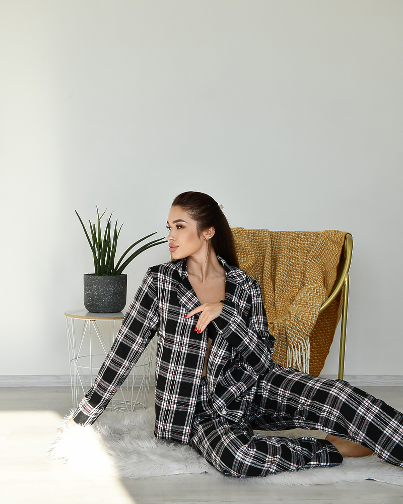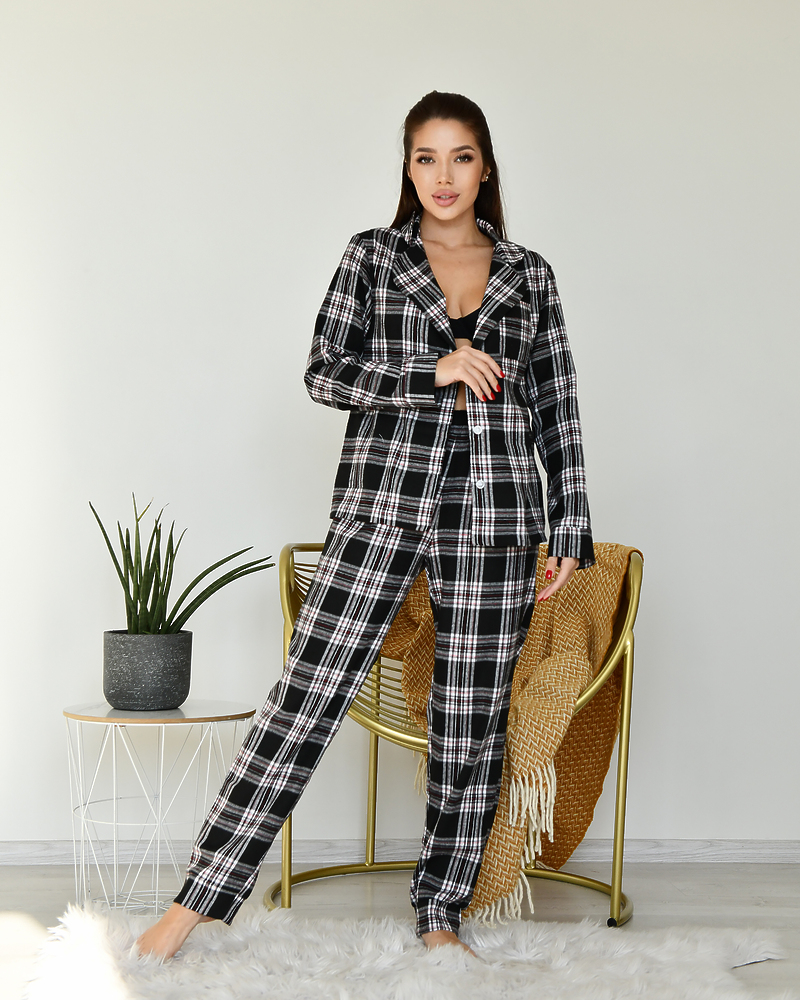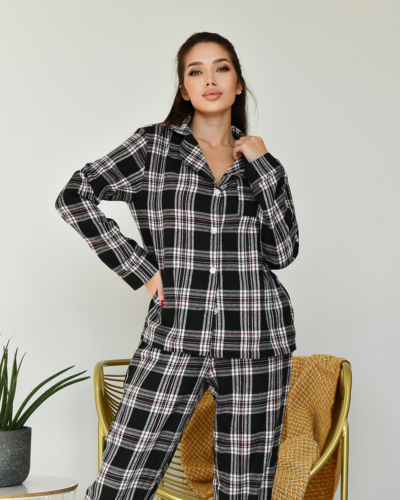 Піжамний костюм у клітинку з якісної тканини байка.