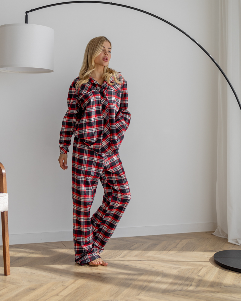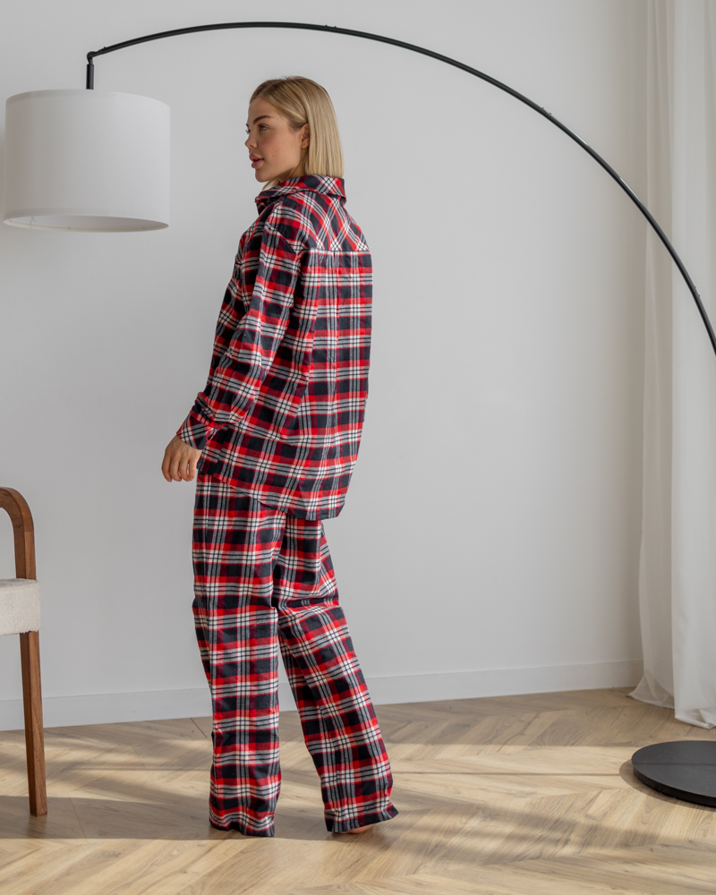 Піжамний костюм трійка з байки Vanessa (Сорочка+Бра+Штани) Синьо-червоний