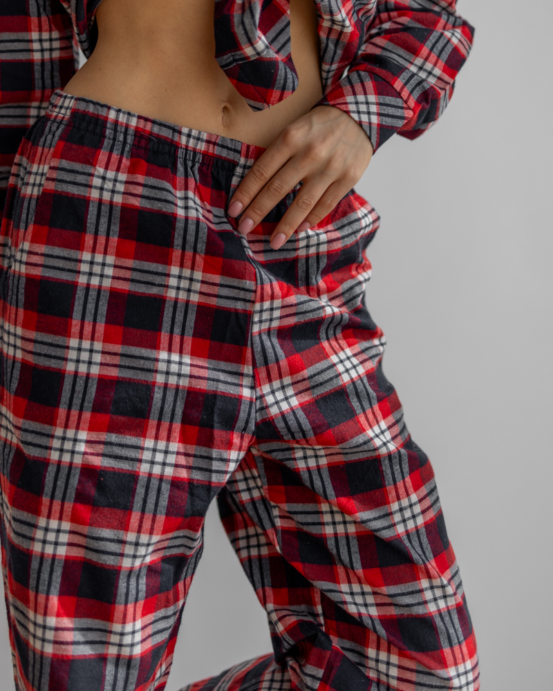 Піжамний костюм у клітинку з якісної тканини байка.