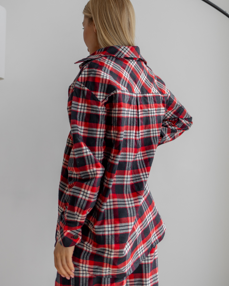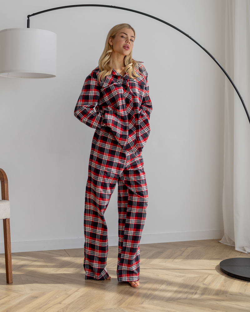 Піжамний костюм трійка з байки Vanessa (Сорочка+Бра+Штани) Синьо-червоний