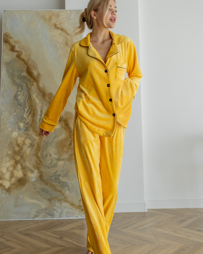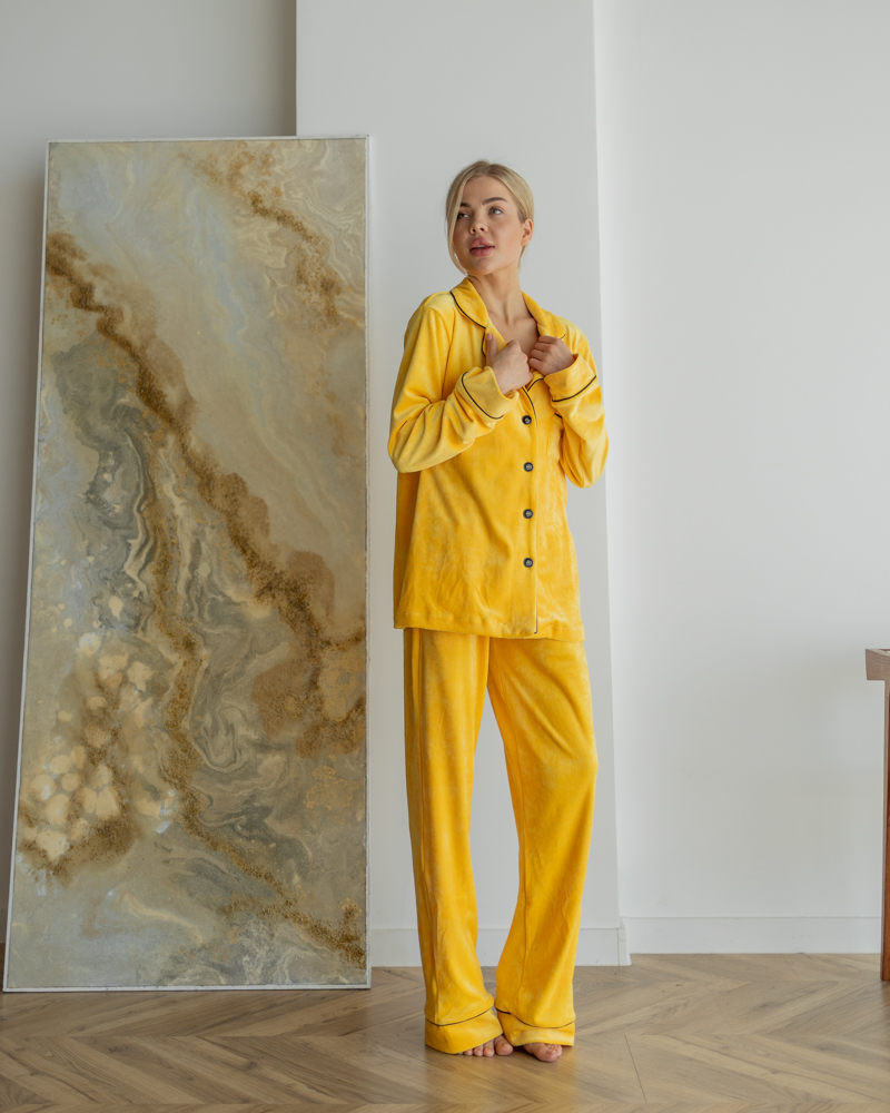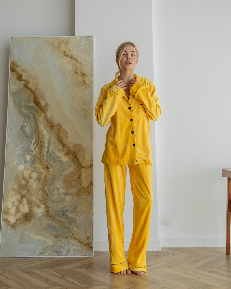 Комплект: Штани + Сорочка на ґудзиках. Класичні штани вільного крою з резинкою на талії та кишенями. Сорочка з кишенями на ґудзиках.